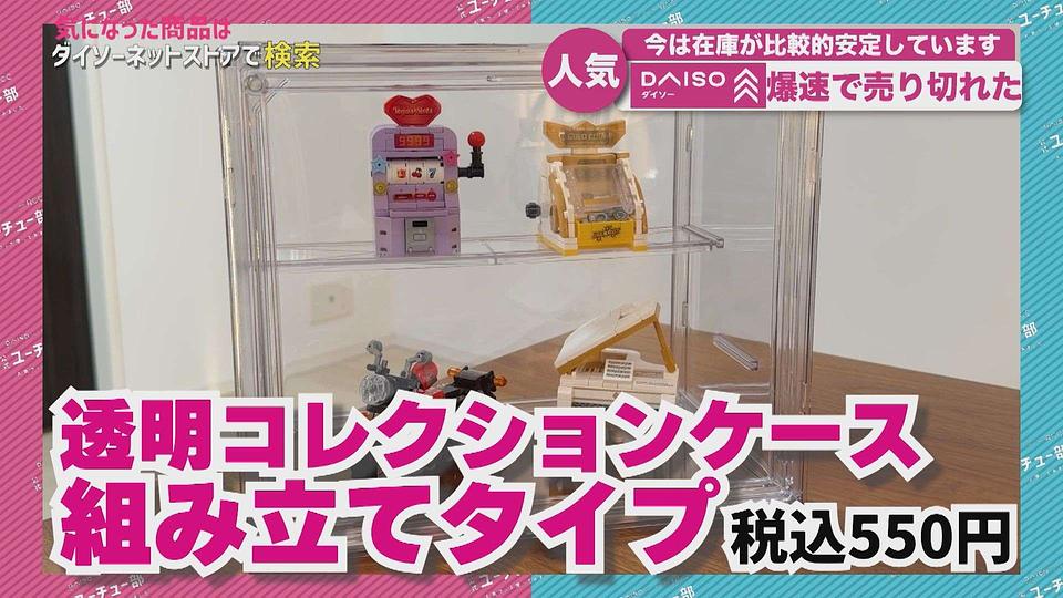 積み重ねて使うことのできる 組立てタイプの透明コレクションケース (税込550円)は、カプセルトイやミニチュアのコレクションを飾るのに大活躍👍🏻