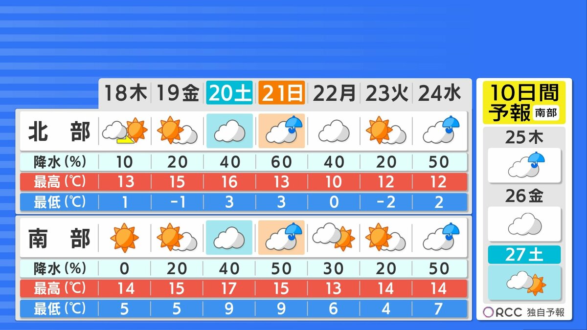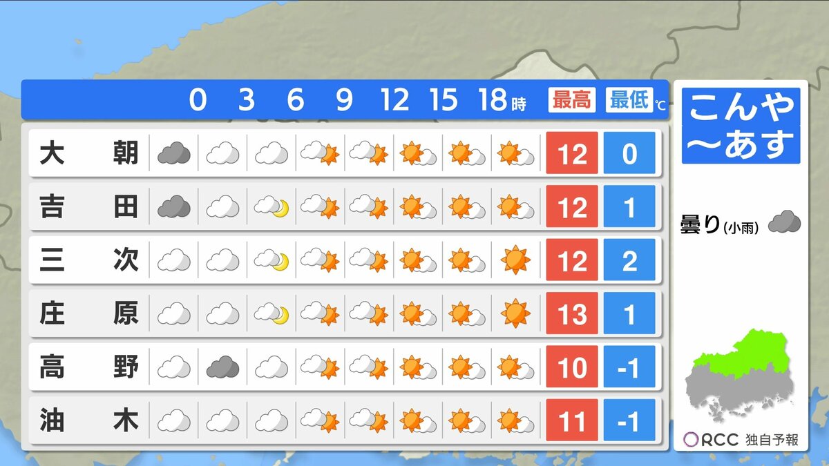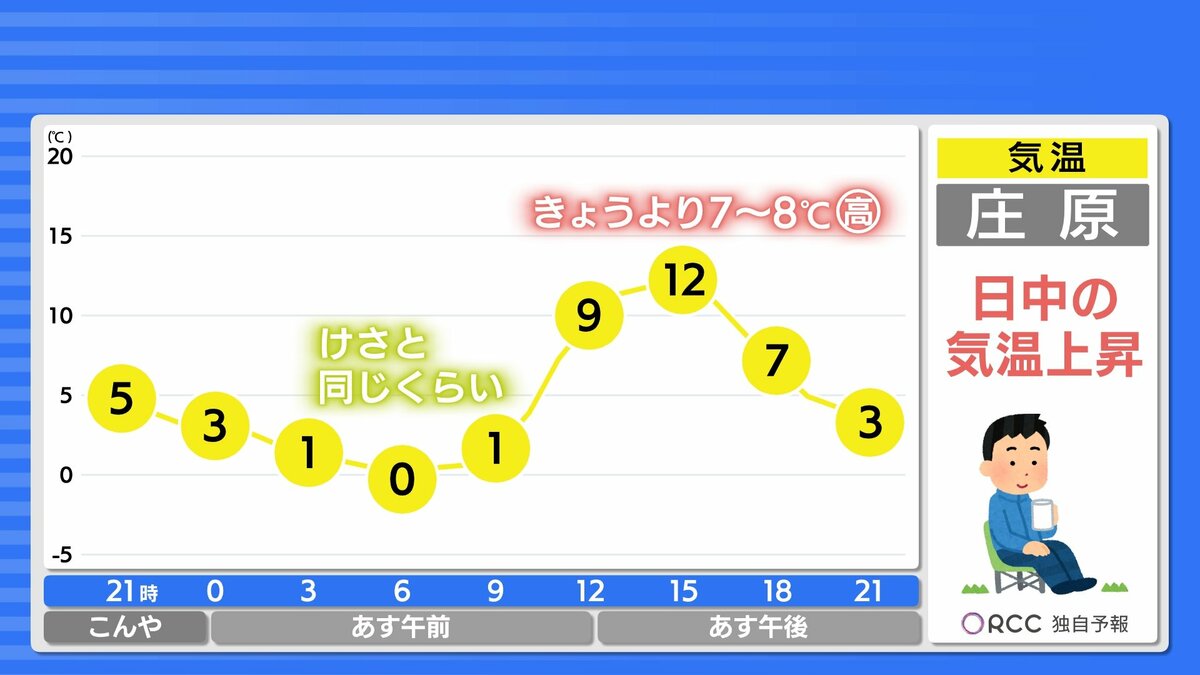 あすの予想最高気温は、各地12℃~15℃くらいで、寒さはきょうより緩むでしょう。特に北部では5℃以上高くなる地点が多いでしょう。あすの日中は日差しのぬくもりを感じられそうです。
