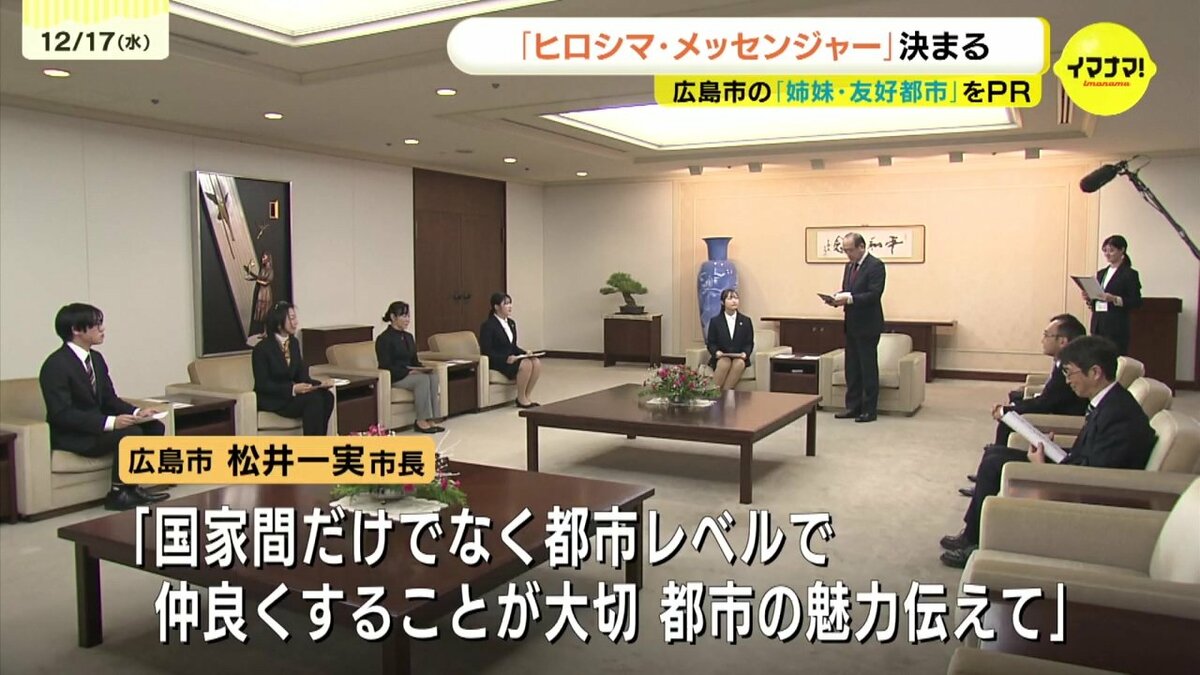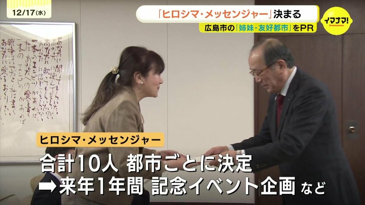 広島市と「姉妹・友好都市」提携を結んでいる海外の都市をPRする「ヒロシマ・メッセンジャー」が決まりました。