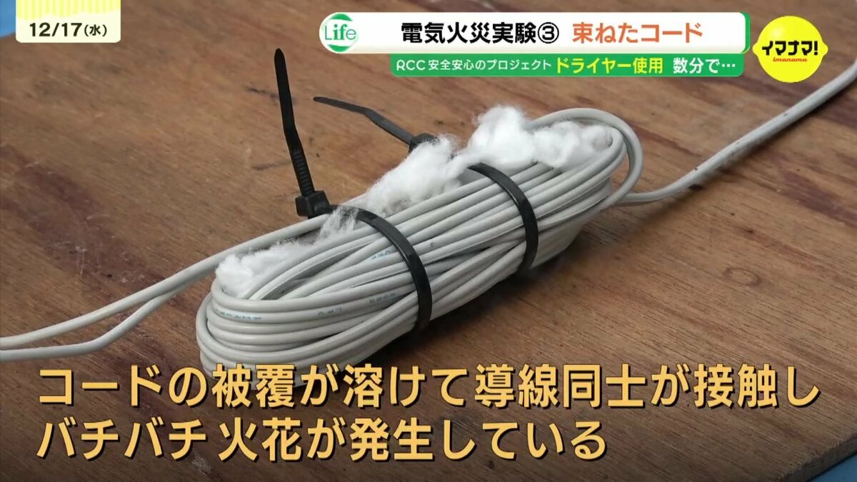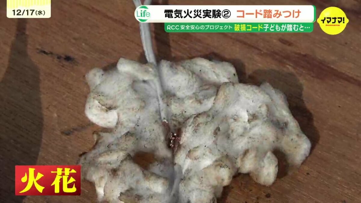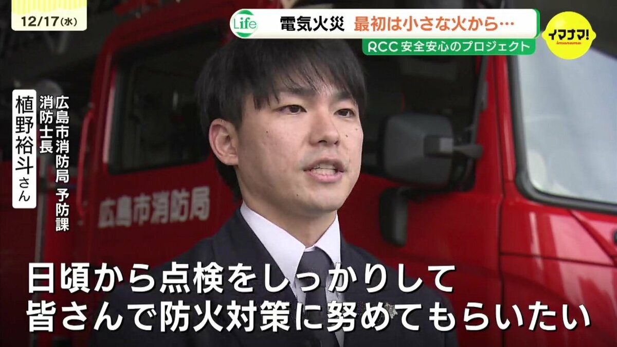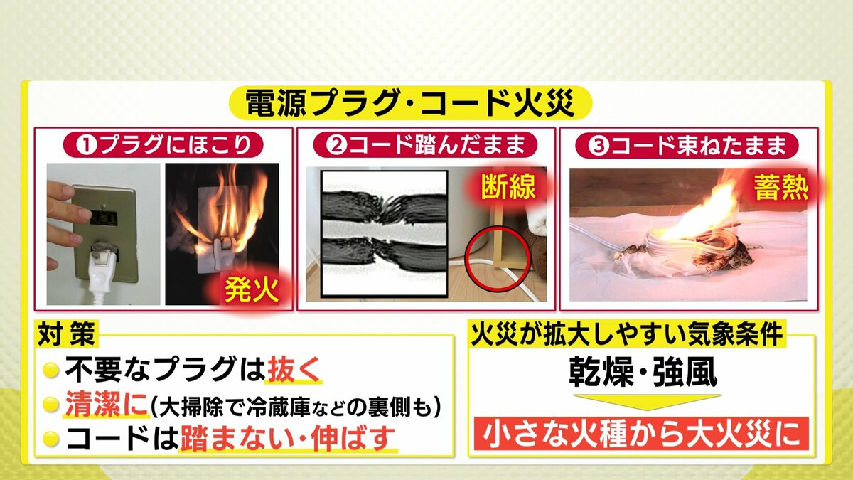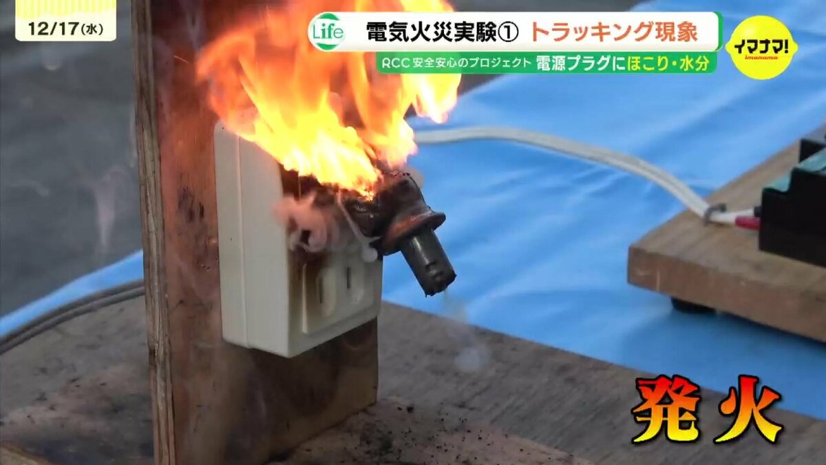 乾燥するこの時期に気をつけたいのが火災です。今回は「電気火災」の危険を考えます。広島市消防局協力のもと、電源プラグやコードの火災実験を取材しました。
