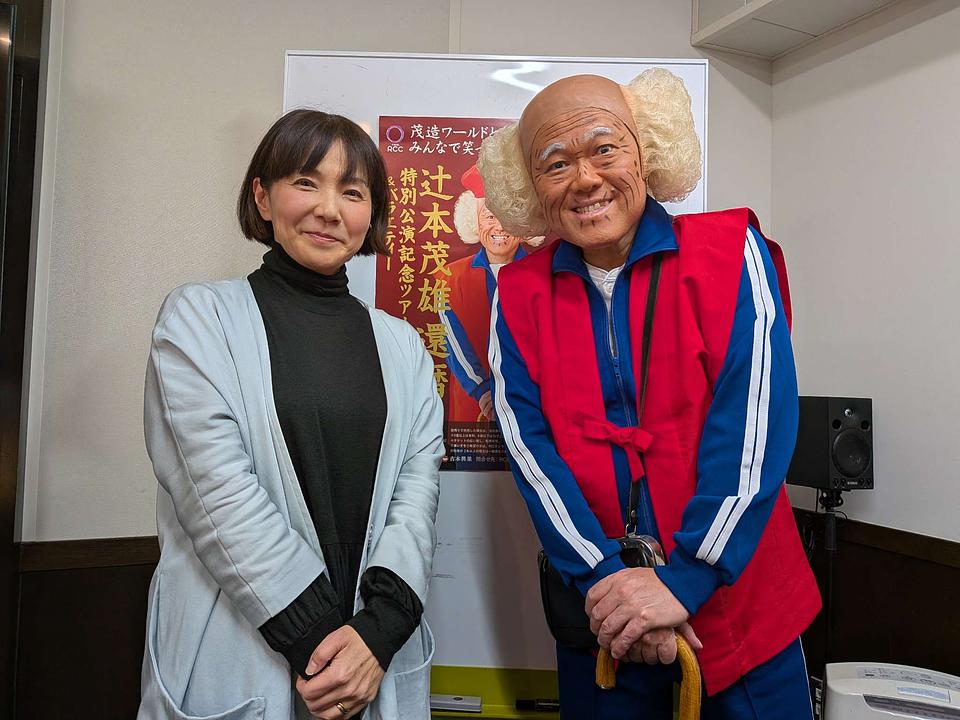 辻本茂雄です。お願いします。茂造のメイクをしたまま、私今、出演しております。