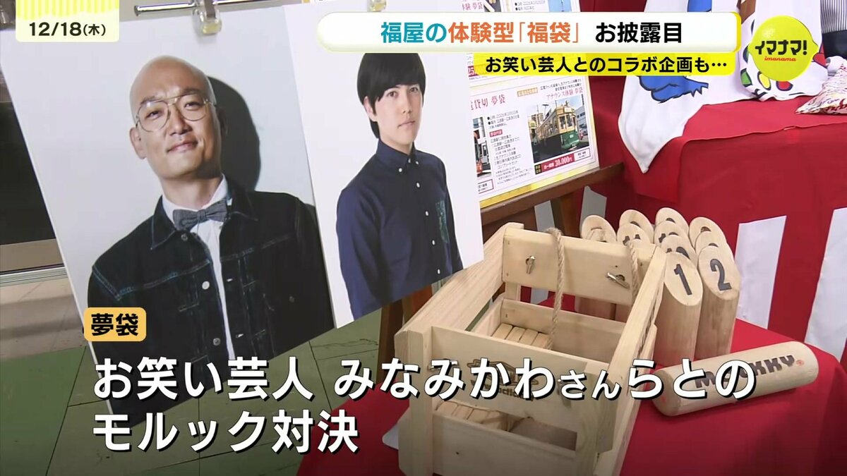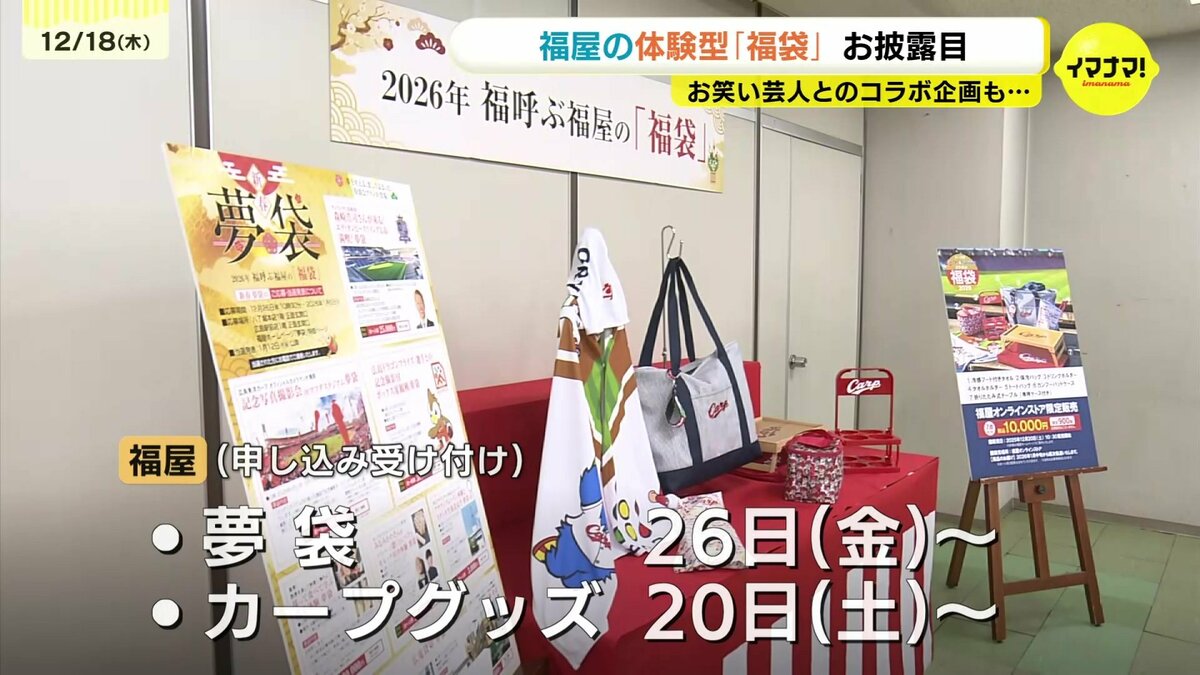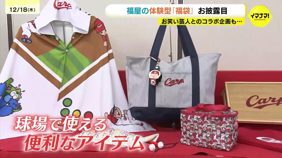 広島市のデパートで毎年人気を集める体験型の福袋とカープグッズの福袋の中身が18日、ひと足先にお披露目されました。