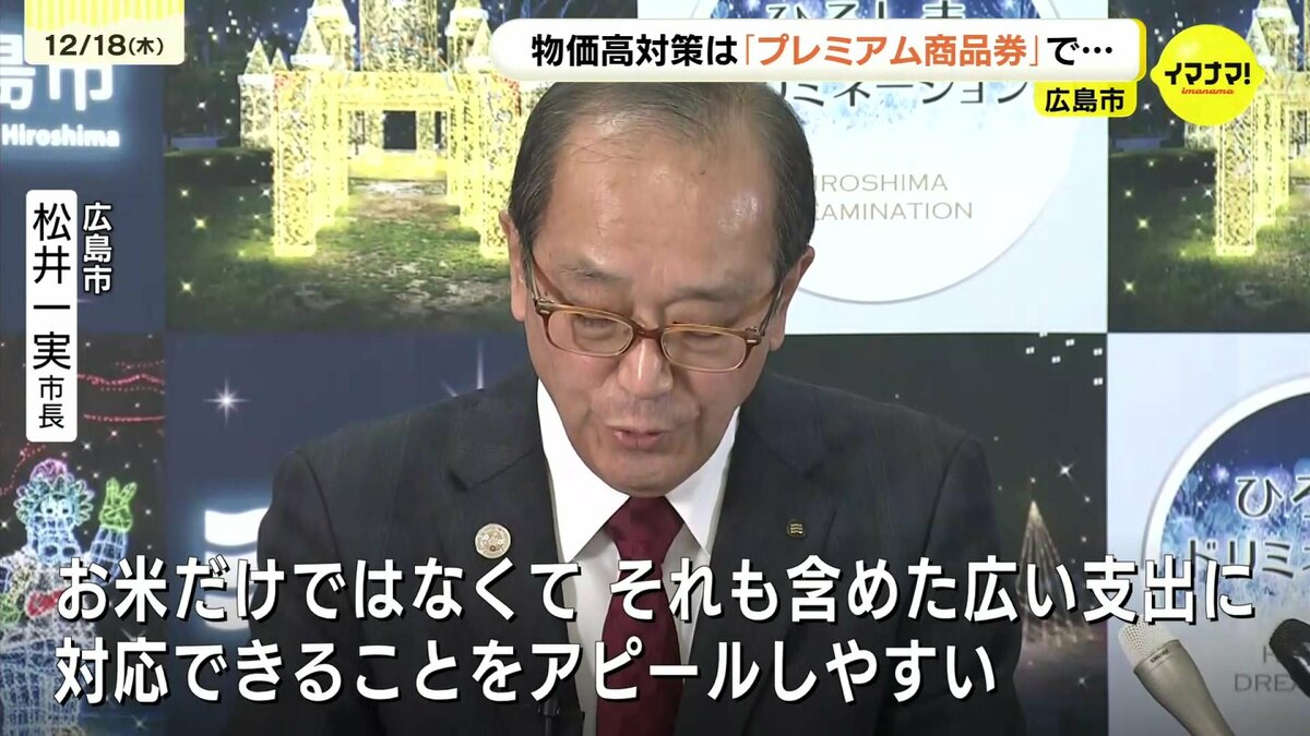 広島市は政府が物価高対策として推奨する「おこめ券」ではなく、プレミアム商品券を検討していると明らかにしました。