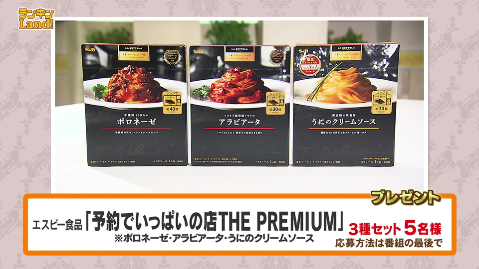 12月19日(金)放送の「ランキンLand!」から視聴者プレゼントのお知らせです。今週のプレゼントは、銀座の名店「ラ・ベットラ」の落合務シェフが監修したレトルトパスタソース「予約でいっぱいの店THE PREMIUM」。本格的なパスタを、ご自宅でお楽しみください🍝