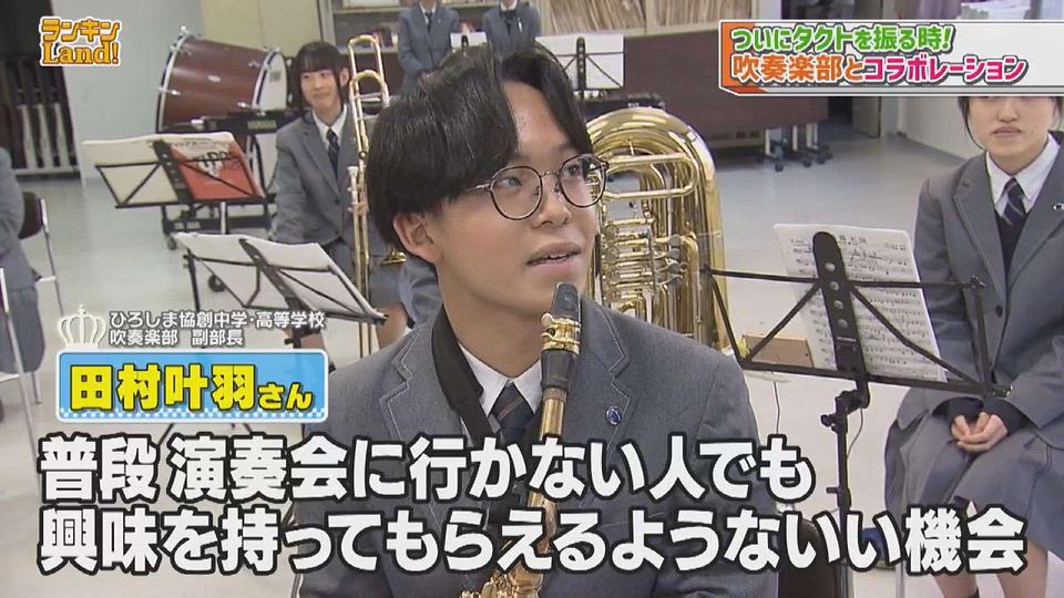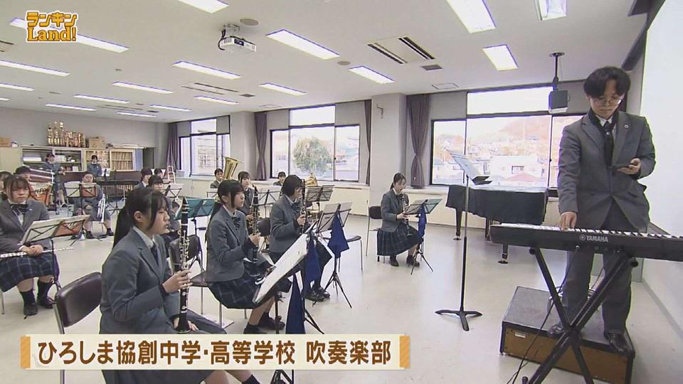 林さんと一緒にやって来たのは 「ひろしま協創中学・高等学校 吹奏楽部」 のみなさんのもとへ。特別に、林さんの指揮で演奏してくれることになりました。