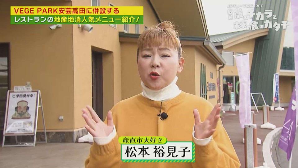 県北の生産物が一堂に揃う 安芸高田市吉田町の 「VEGE PARK安芸高田」 を満喫中の 松本裕見子 さん。