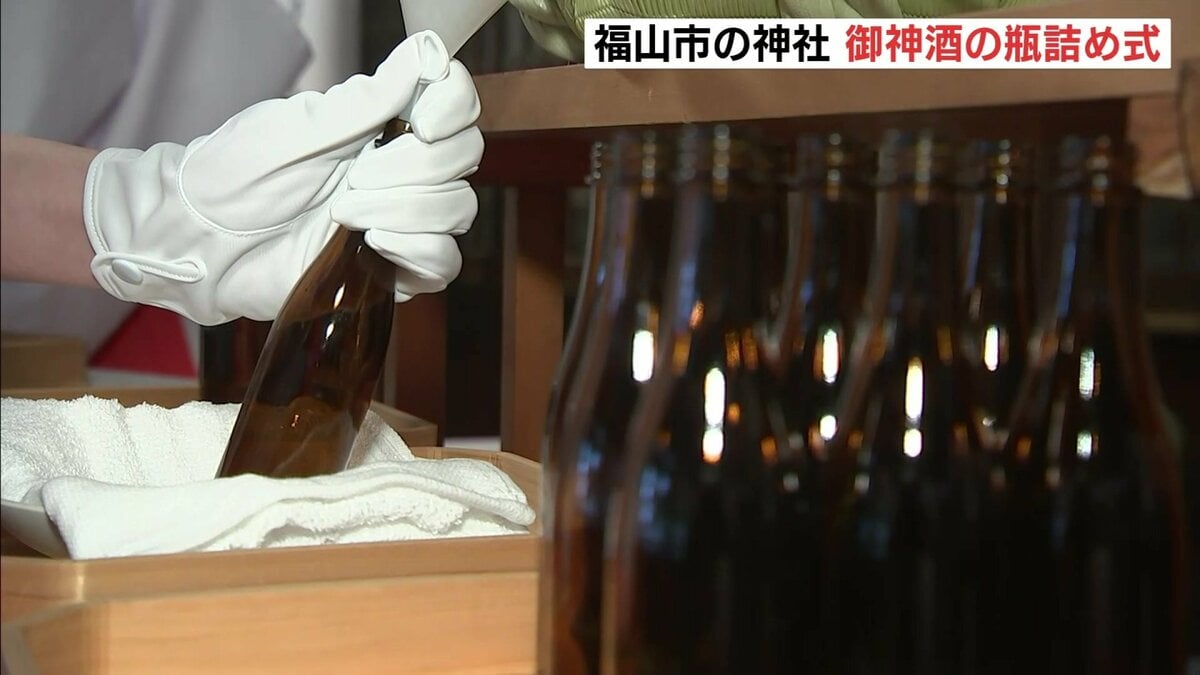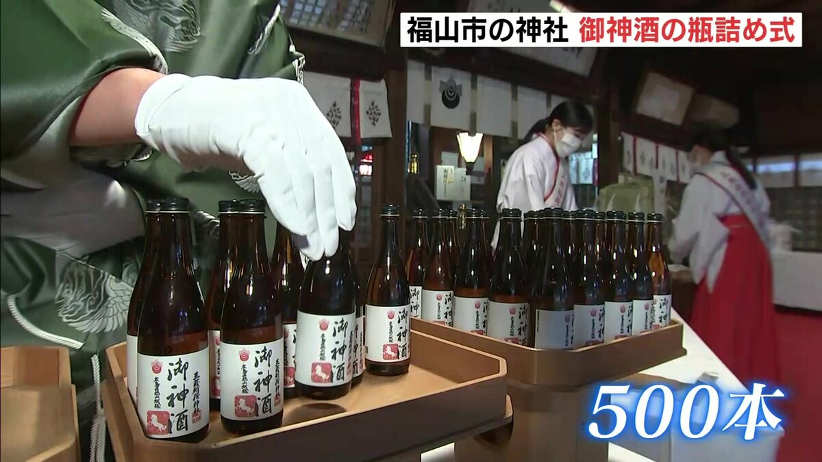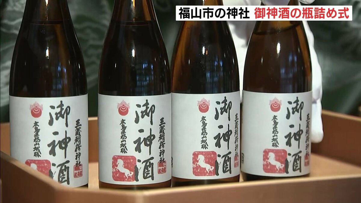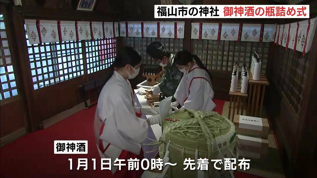 広島県福山市の神社で、初詣客に配る御神酒の瓶詰めが行われました。