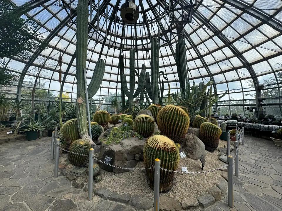 小温室には、サボテンや多肉植物を展示。サボテンや多肉植物の専用温室を備えている植物園は珍しく、兵庫県内でも「手柄山温室植物園」だけ。乾燥地帯の環境を再現するため湿度や日当たり、水やりの頻度までしっかり管理を行い、冬は5℃以下にならないように調整されています。