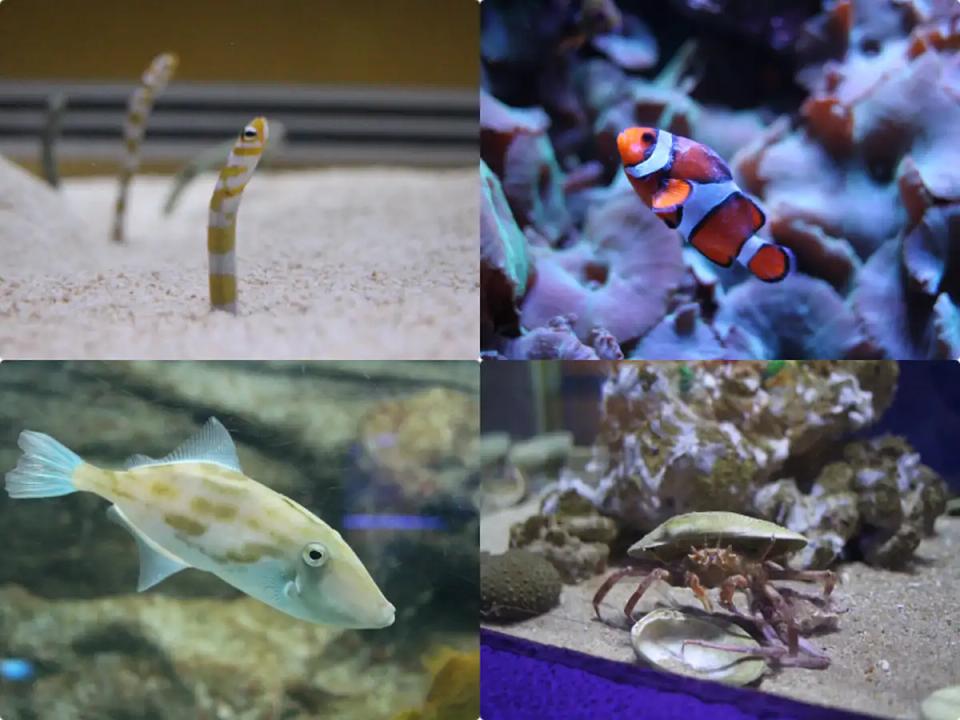 屋内の展示エリアでは、チンアナゴやクマノミなど水族館で人気の魚も発見!