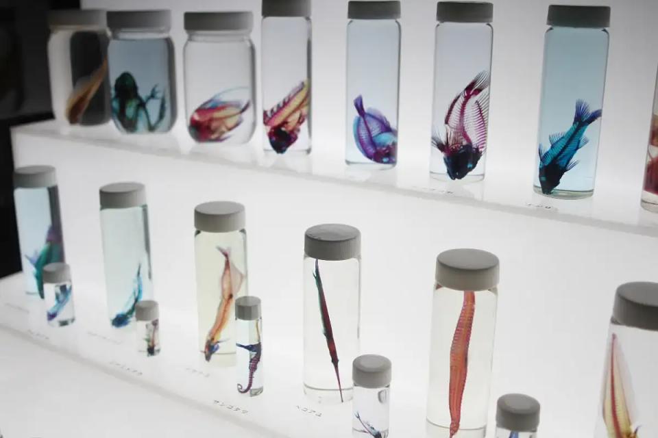 スタッフさんが製作した美しい生きものの透明骨格標本