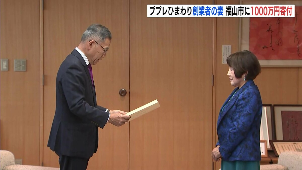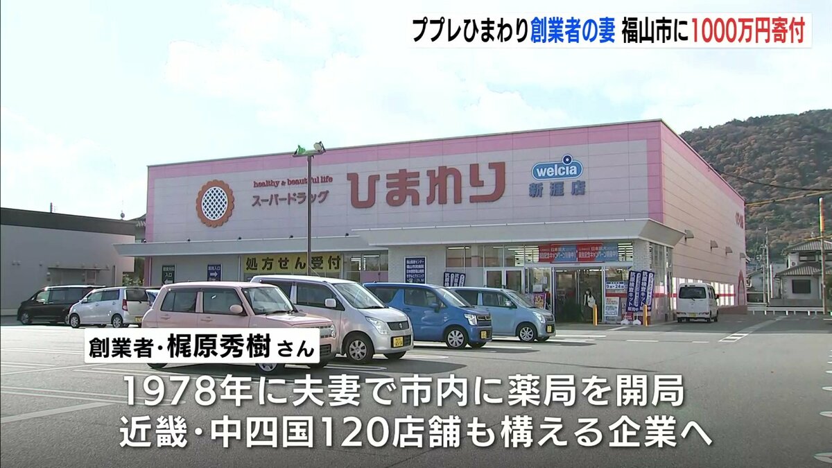 2025年6月に亡くなったドラッグストアの創業者の妻が、広島県福山市に1000万円を寄付しました。