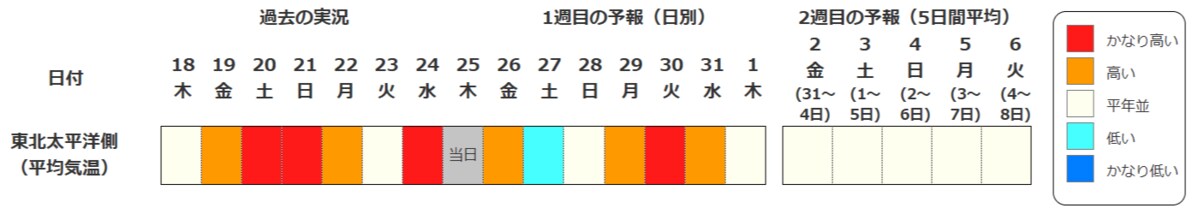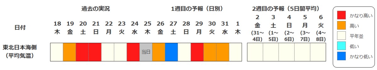 警戒事項 かなりの低温(5日平均地域気温平年差-2.0℃以下となる確率が30%以上です)