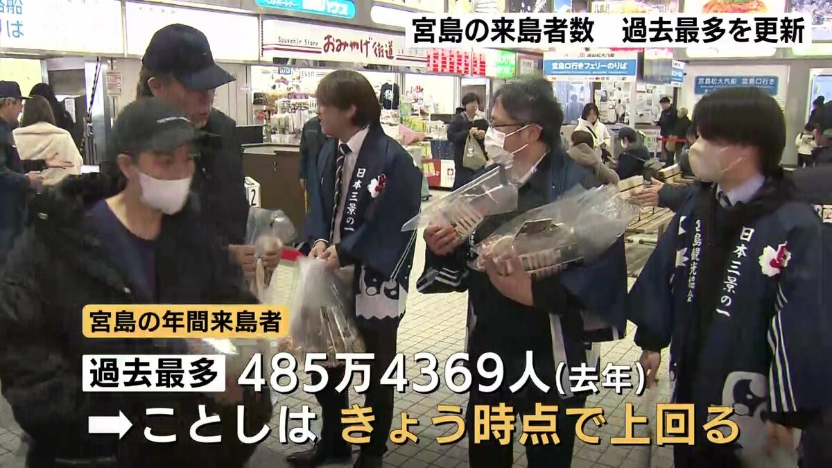 広島県にある世界遺産の宮島を訪れた人は、2年連続で過去最多を更新しました。