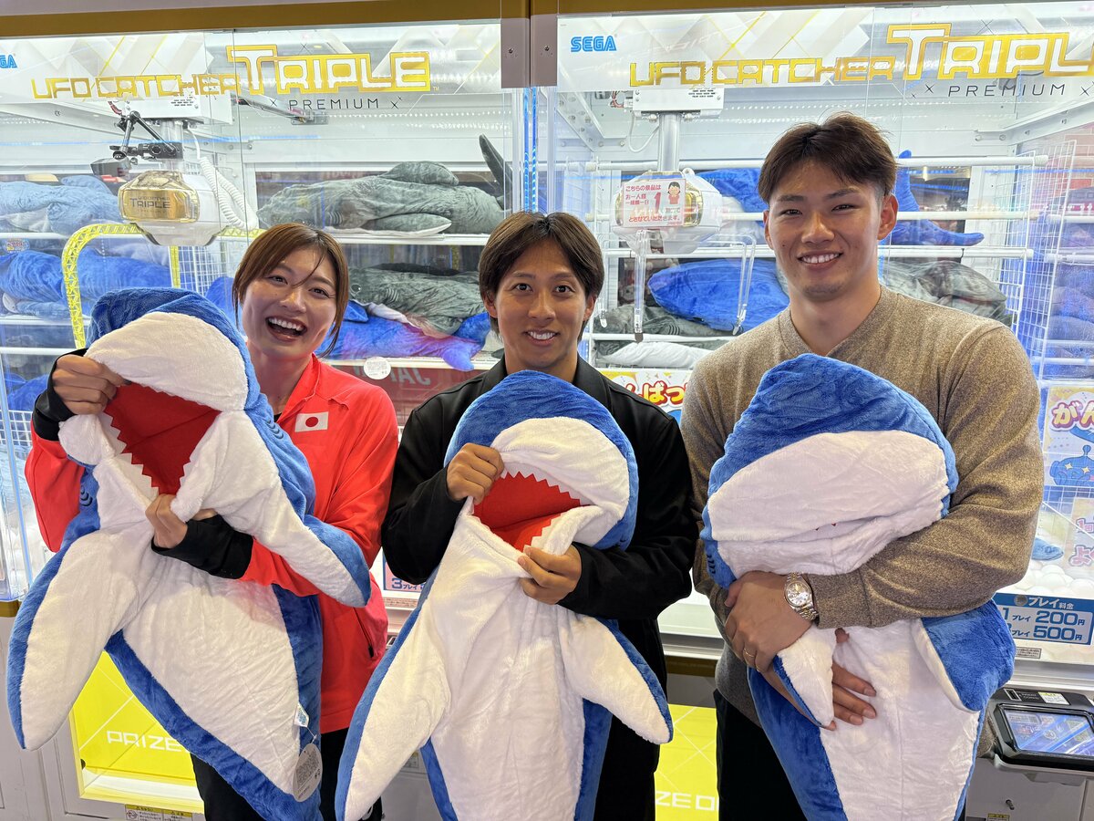福部真子選手の「日本一の極意」を学ぶため、中村奨成選手と羽月隆太郎選手がトレーニングジムの次に向かったのは、まさかのゲームセンターにあるクレーンゲームコーナー。実は、暇さえあればゲームセンターを訪れ、クレーンゲームで景品を獲得するという、クレーンゲームが趣味であり特技でもある福部選手。パリ五輪、世界陸上の出場や、日本記録更新を支えた「ある力」を養えるということで、3人でクレーンゲーム対決を実施。公平を期すため、2人には事前に福部選手からクレーンゲームのコツが伝授されました。真剣に聞き入る2人…
