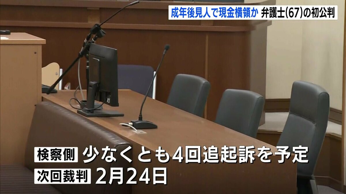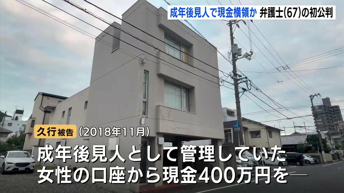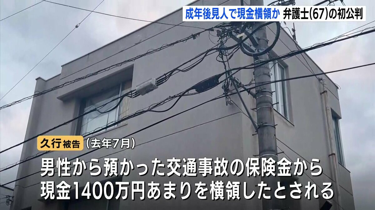 起訴状によりますと、久行被告は2018年11月、成年後見人として管理していた女性の口座から現金400万円を、去年7月には担当していた男性から預かった交通事故の保険金から現金1400万円あまりをそれぞれ引き出して横領したとされています。