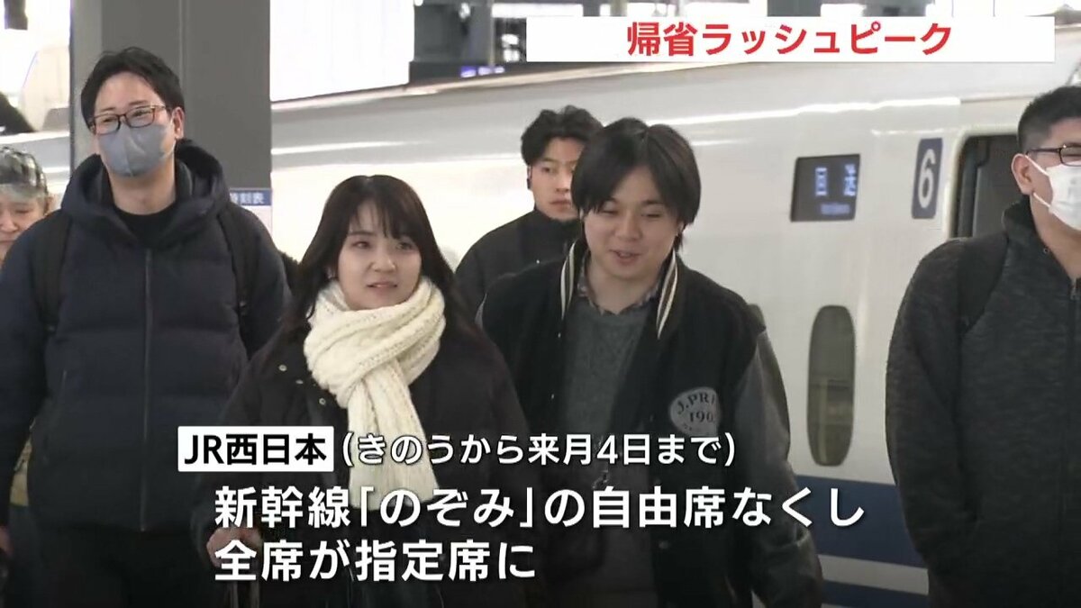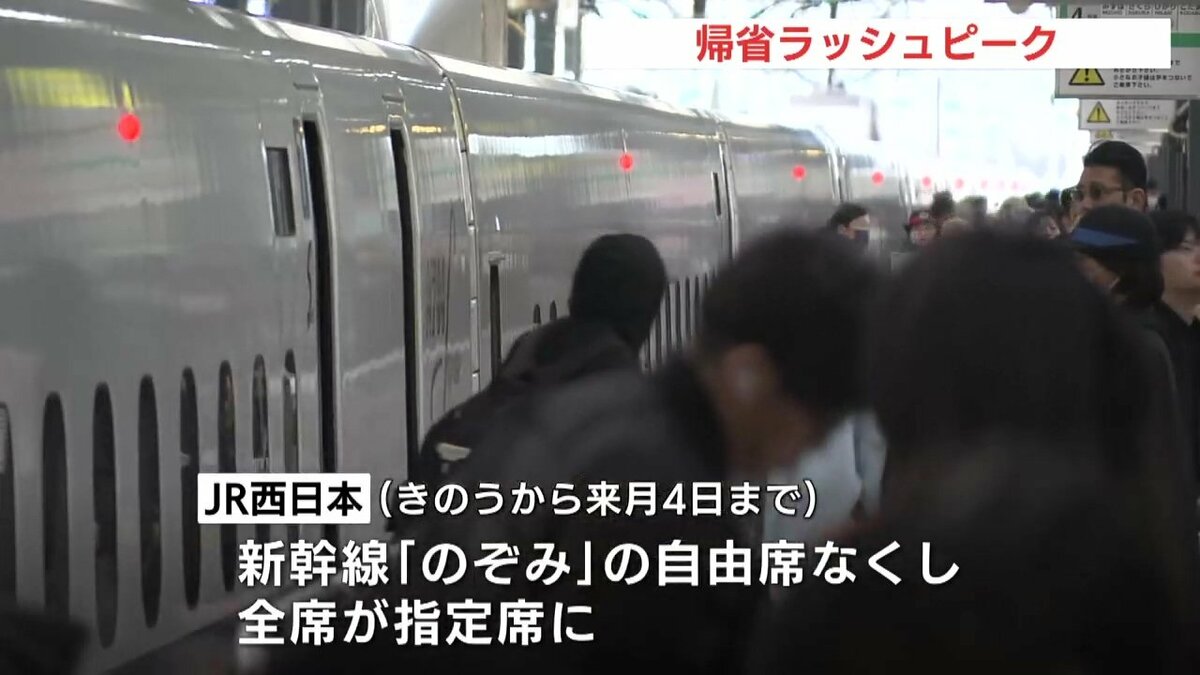 JR西日本では混雑緩和などに対応するため、26日から来月4日まで新幹線「のぞみ」の自由席を無くし、全ての座席を指定席としています。