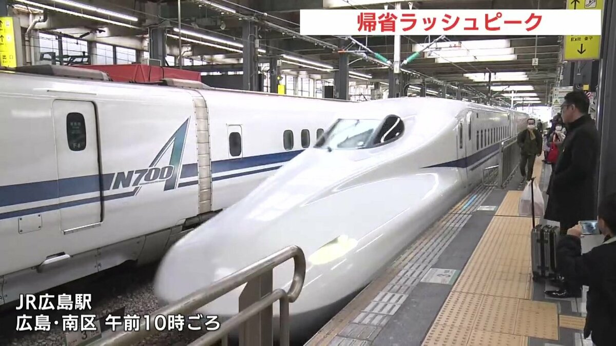 最大で9連休となる年末年始の初日の27日、JR広島駅は帰省ラッシュのピークとなっていて、新幹線口のホームや改札は、年末年始を広島で過ごす人たちで混雑していました。