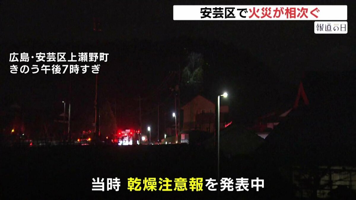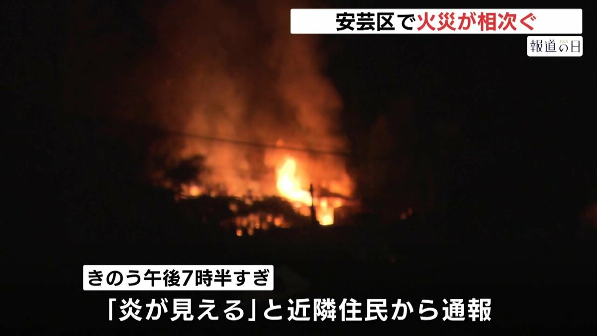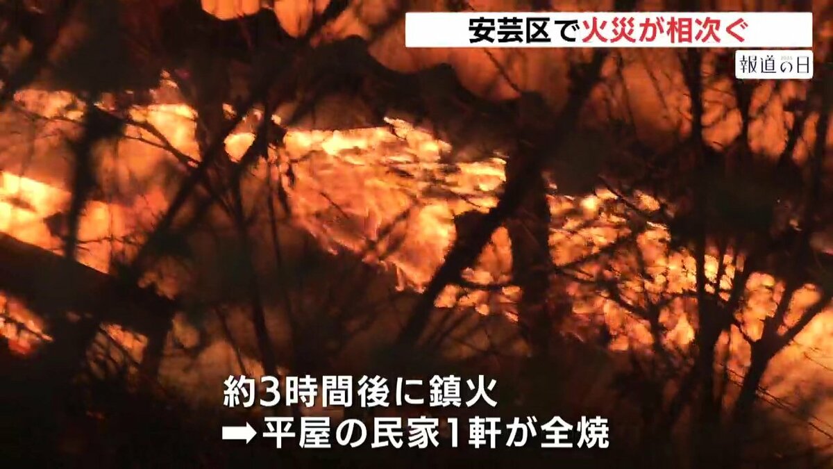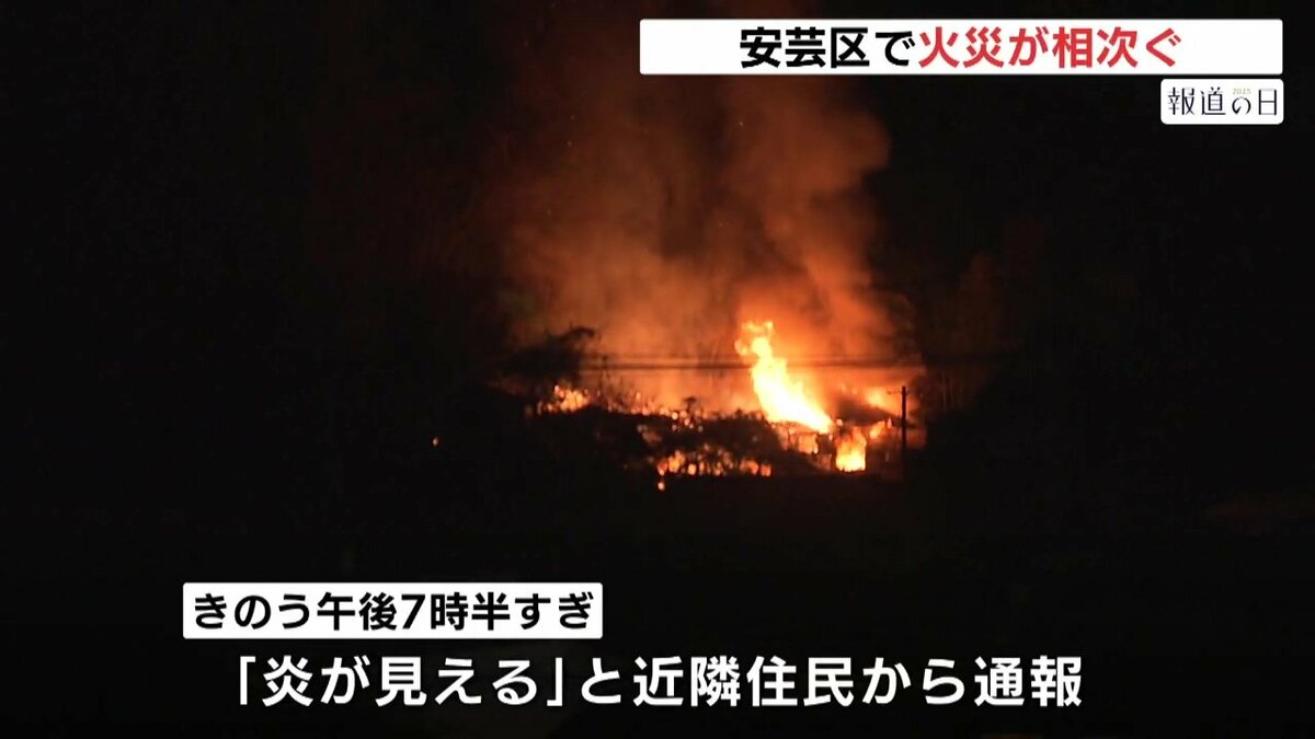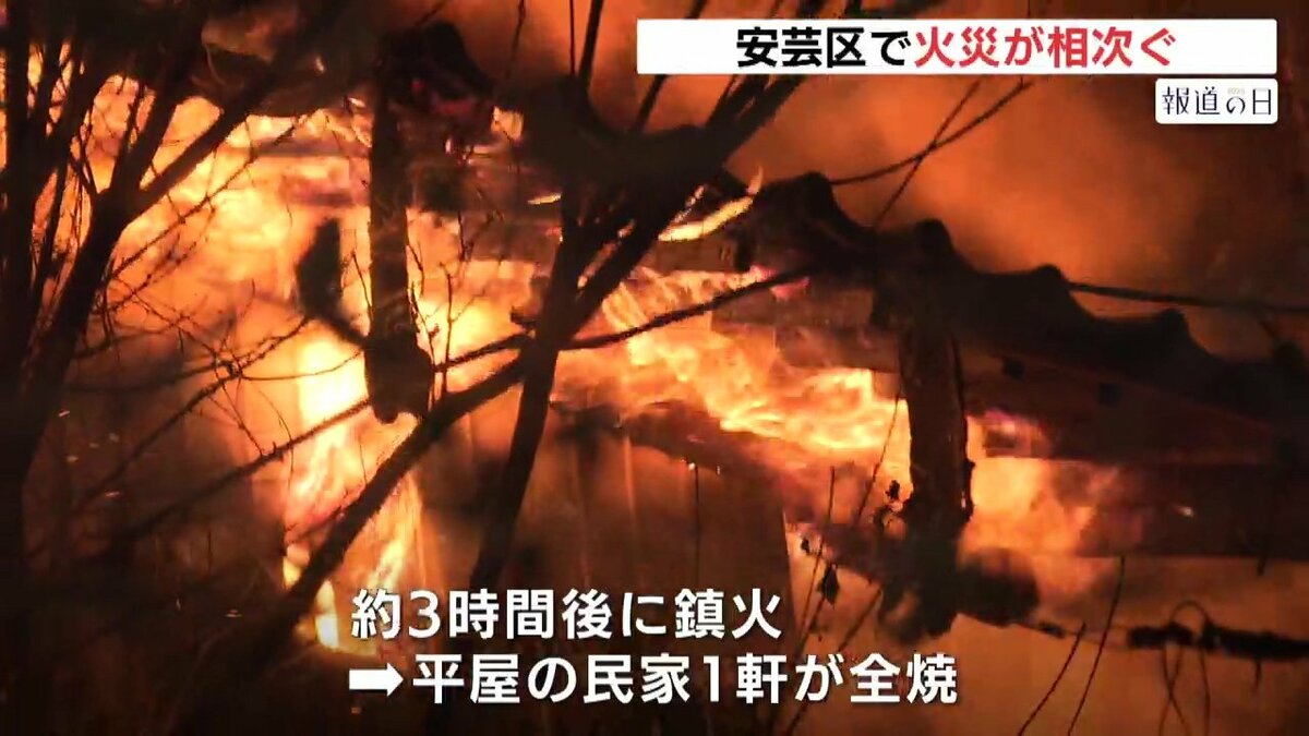 広島県広島市安芸区で27日夜、住宅1軒を焼くなど、火災が相次ぎました。