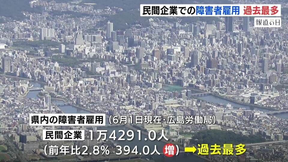 広島県内の民間企業で働く障害者の数が過去最多を更新したことが分かりました。