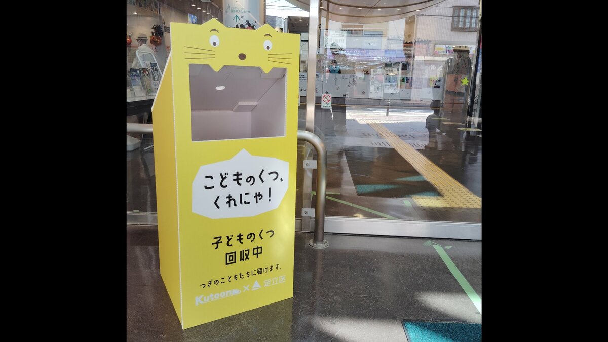 谷口代表によると、実はまだサイトに掲載されていないストックされている靴が1万足以上もあります。この多くは、東京都などの自治体と連携して図書館や子育て広場に設置している回収BOX「くつにゃん」に寄付されたものです。