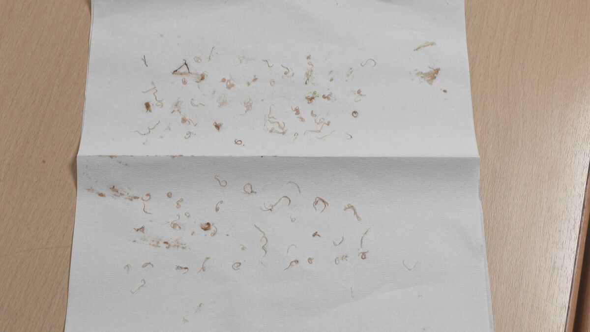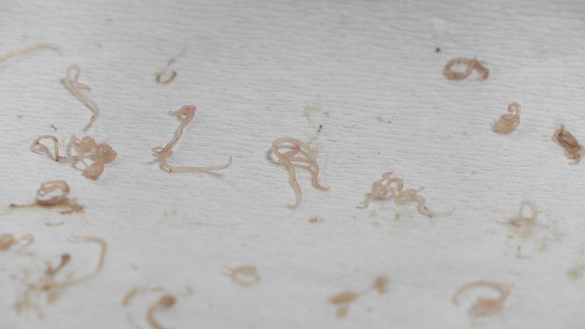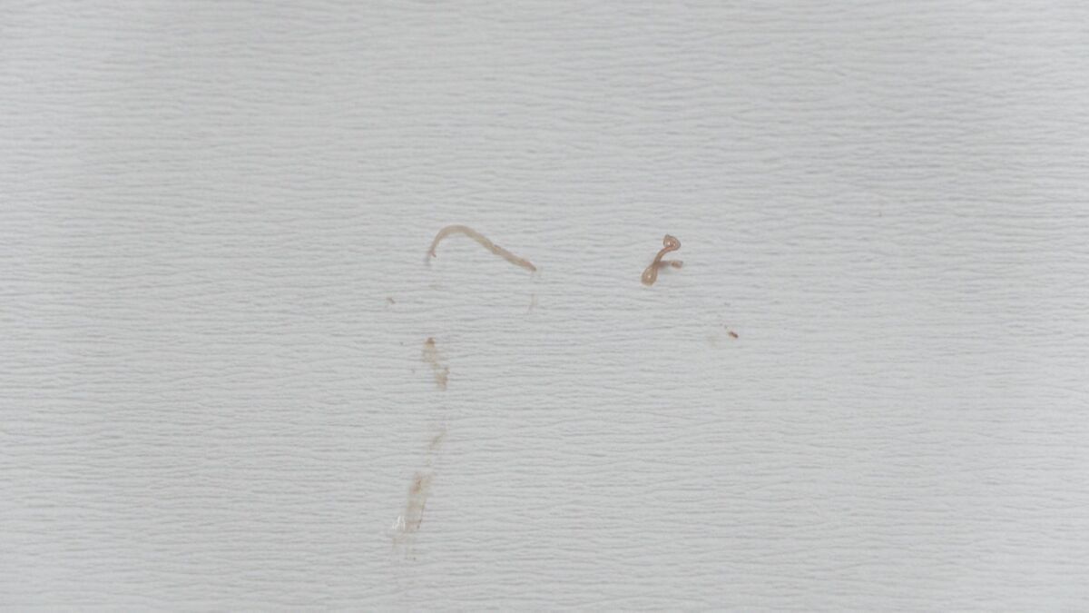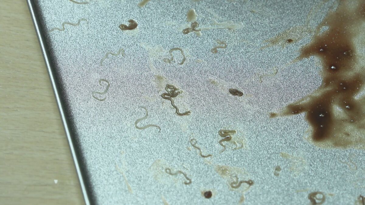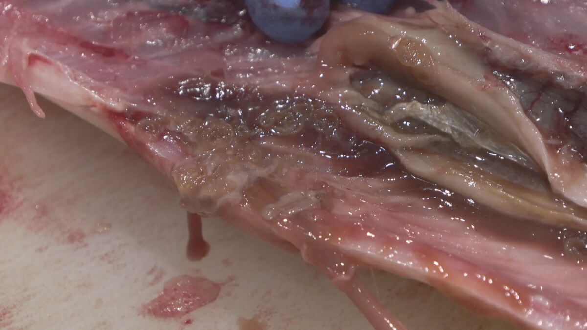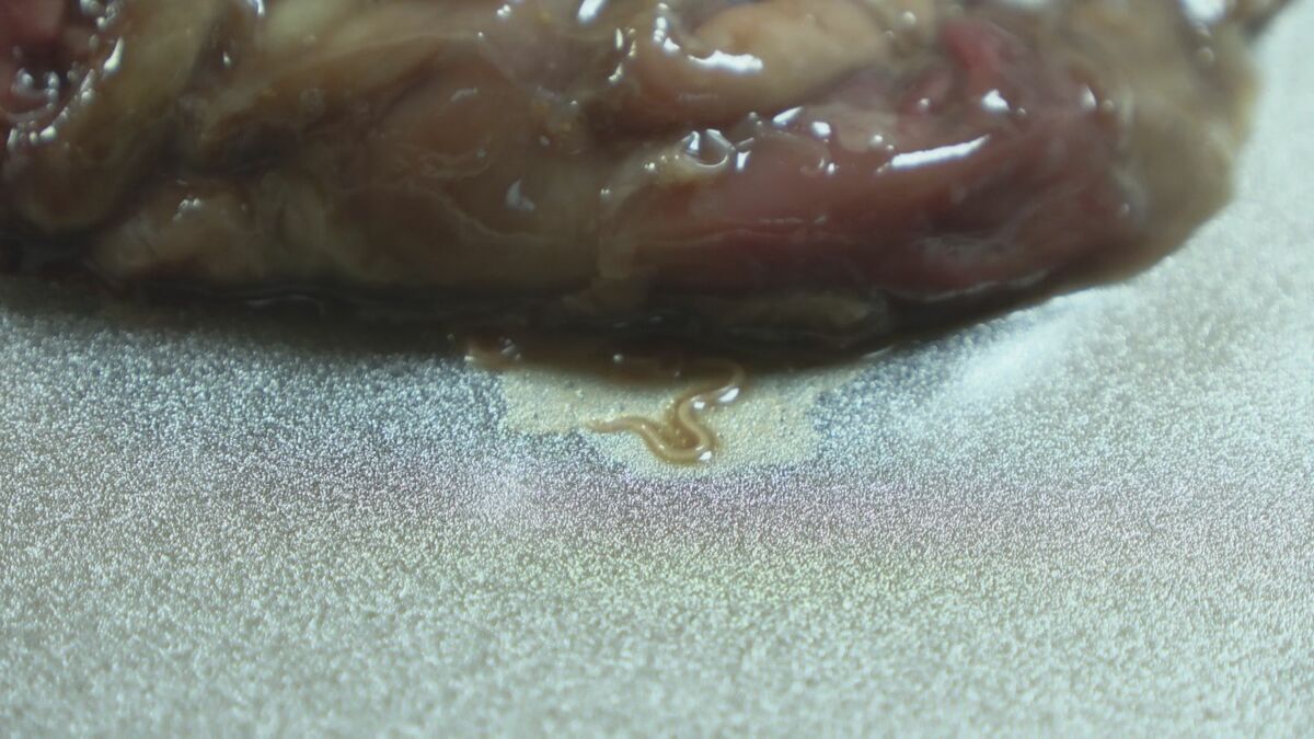 体長2~3cmほどのアニサキスが内臓に90匹ほどいました。