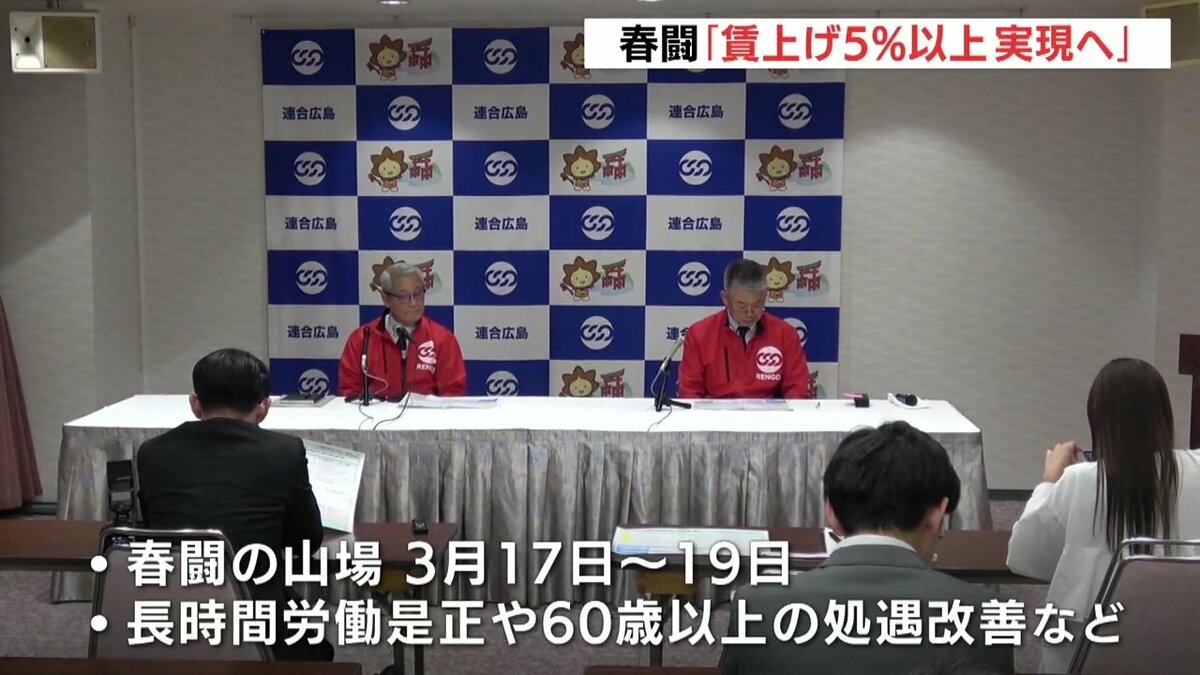 連合広島は春闘の山場を3月17日から19日に設定し、長時間労働の是正や60歳以上の処遇改善なども要求していくとしています。