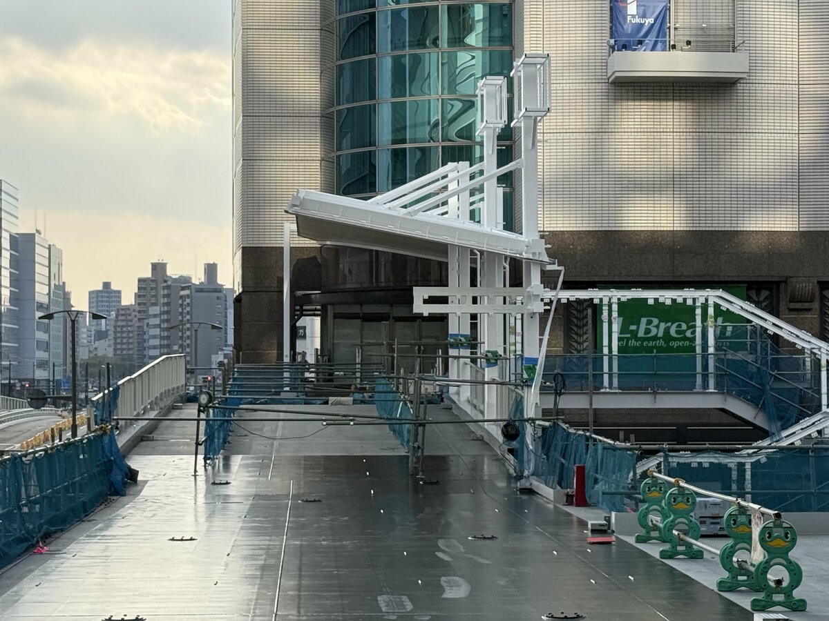 この工事は、広島駅周辺の回遊性向上を目的に進められています。実はエールエールA館は広島駅から向かう場合、地下通路に一旦降りて向かうか、遠回りに地上の歩道を通って向かうしかありませんでした。