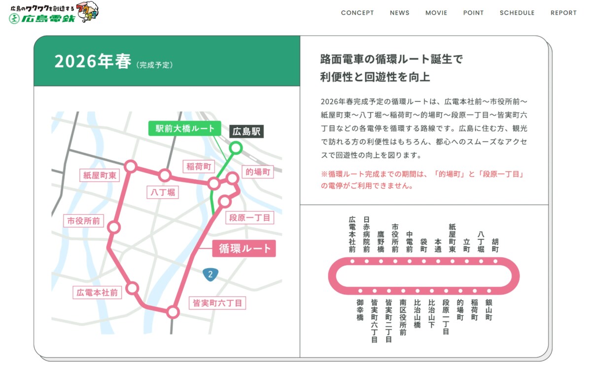 当初的場町・段原一丁目は廃止される予定でしたが、地元住民からの反発を受け、循環ルートという形で再提案されたものです。循環ルートの開業は今年春の予定です。