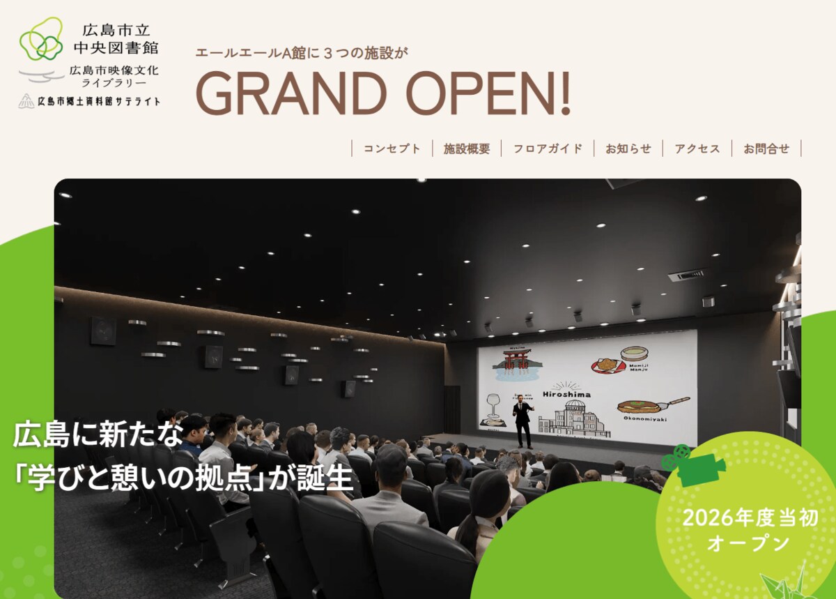 機能としては「広島市立中央図書館」と「広島市映像文化ライブラリー」そして「広島市郷土資料館サテライト」の3つの機能が集約されます。