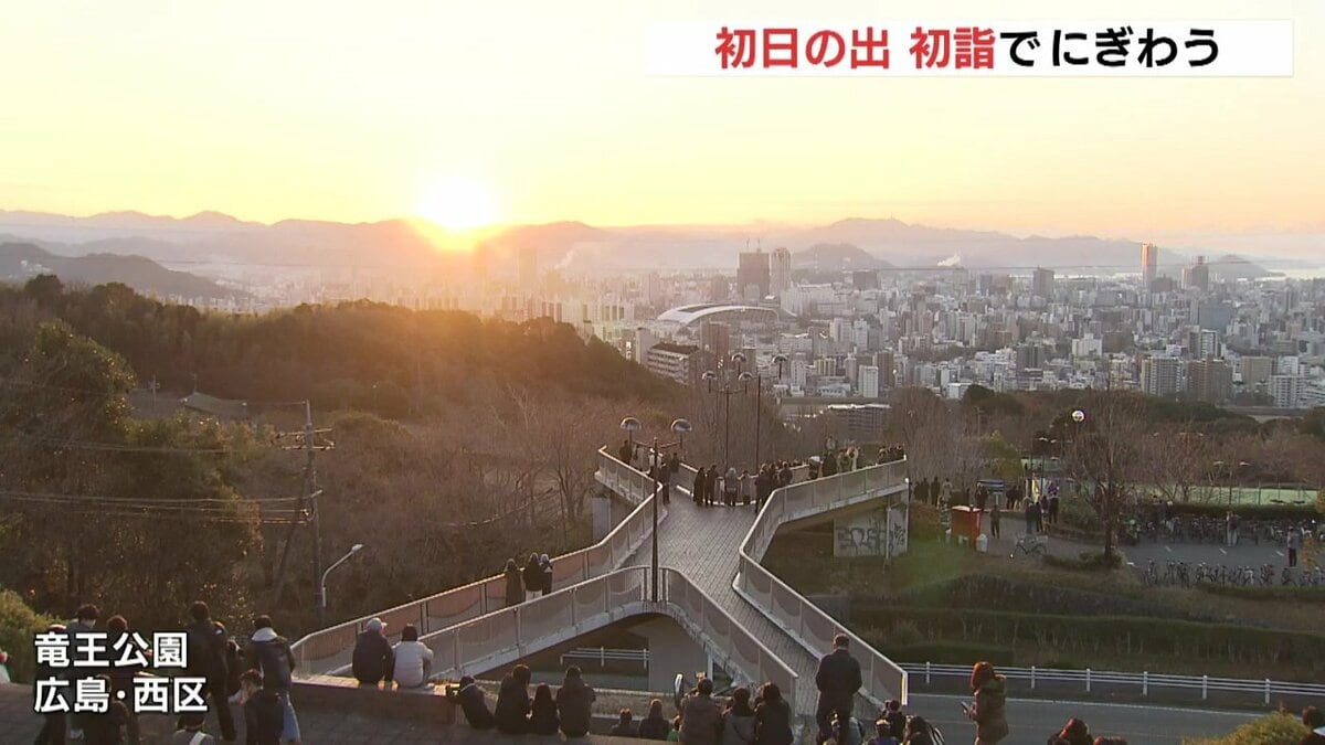 広島市西区の竜王公園では初日の出をカメラにおさめようと多くの人が集まっていました。