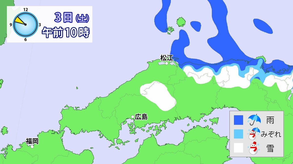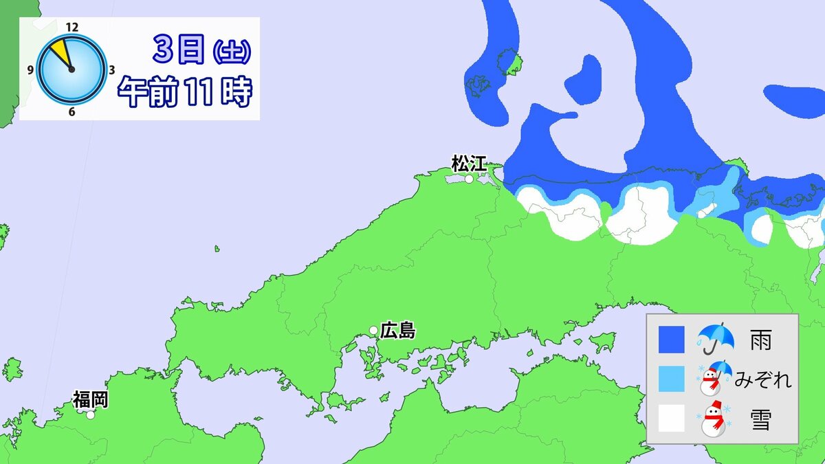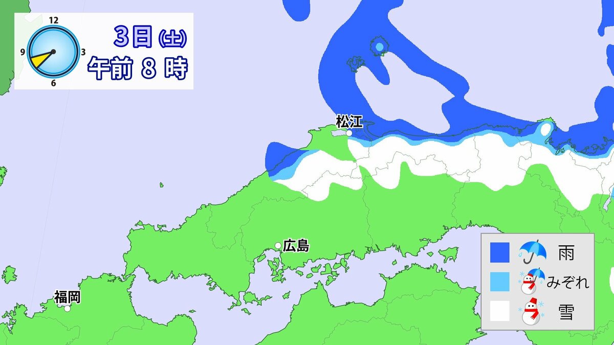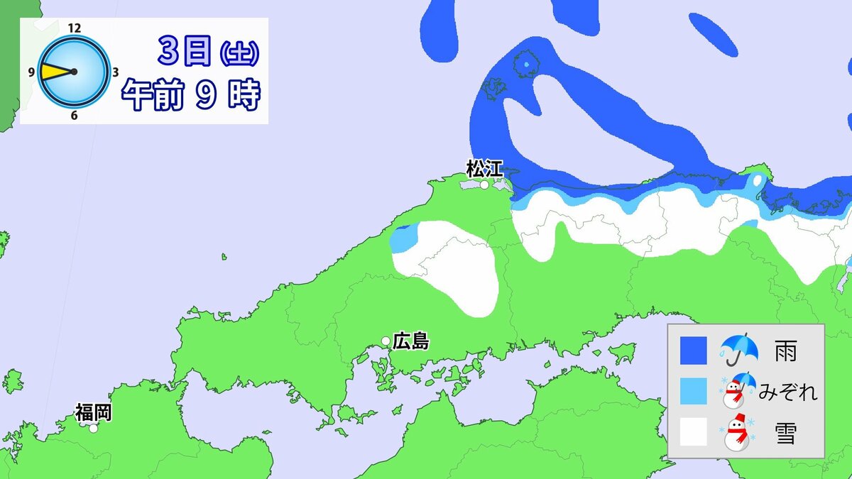 中国地方では、警報級の大雪となる可能性は低くなりましたが、引き続き3日夕方にかけて大雪となる見込みです。