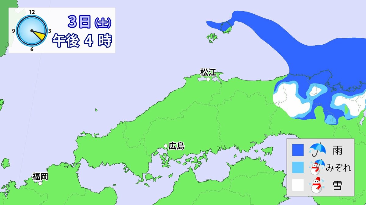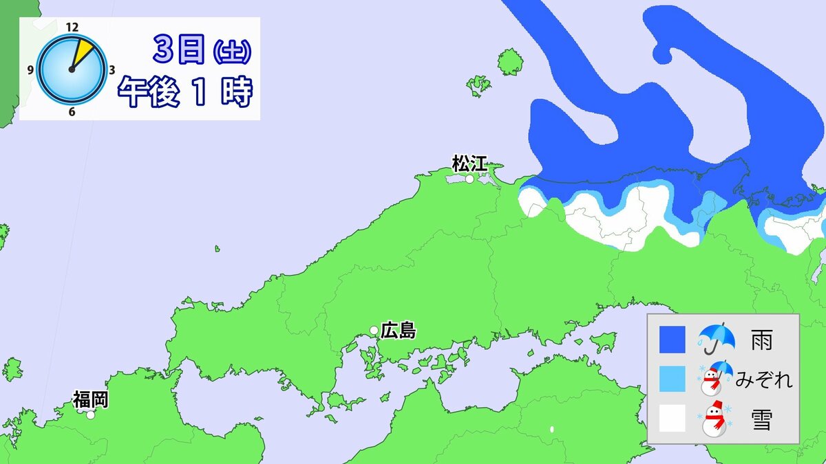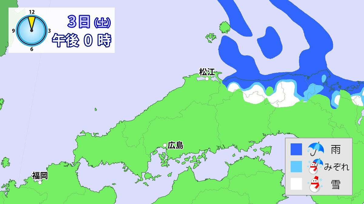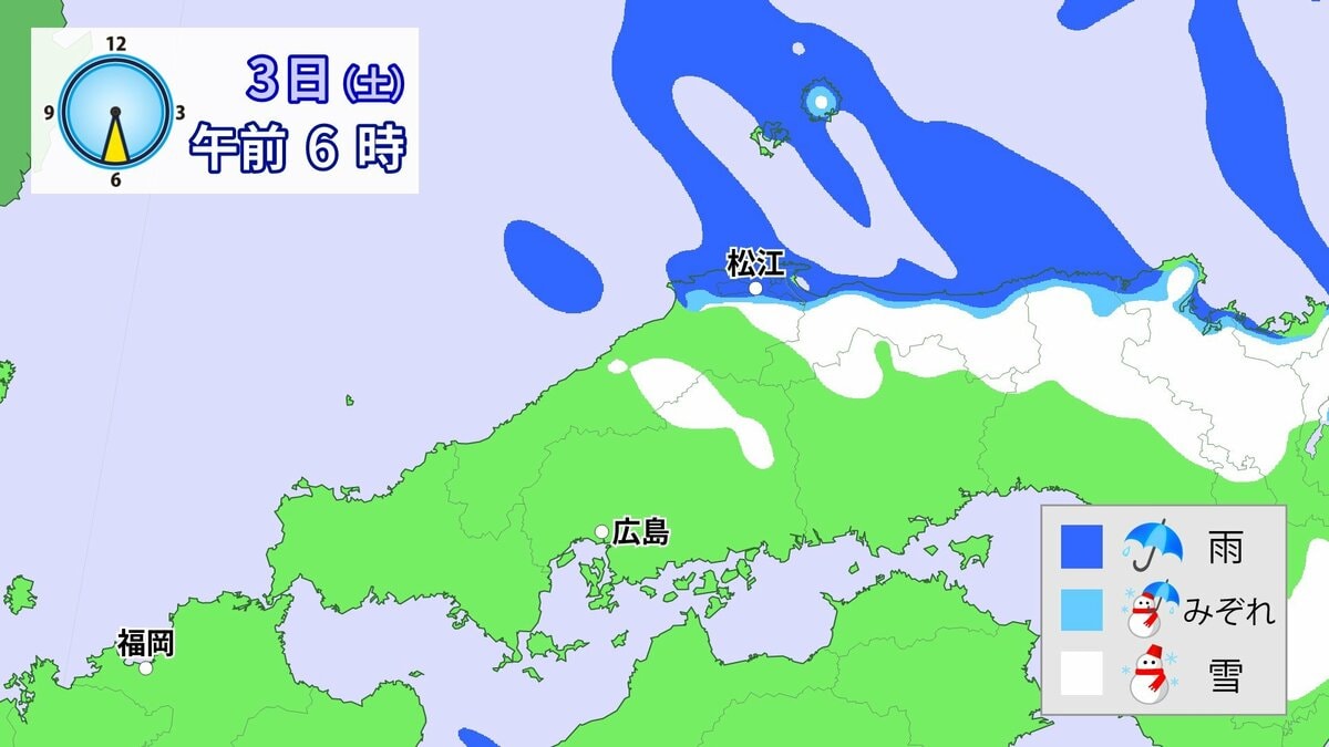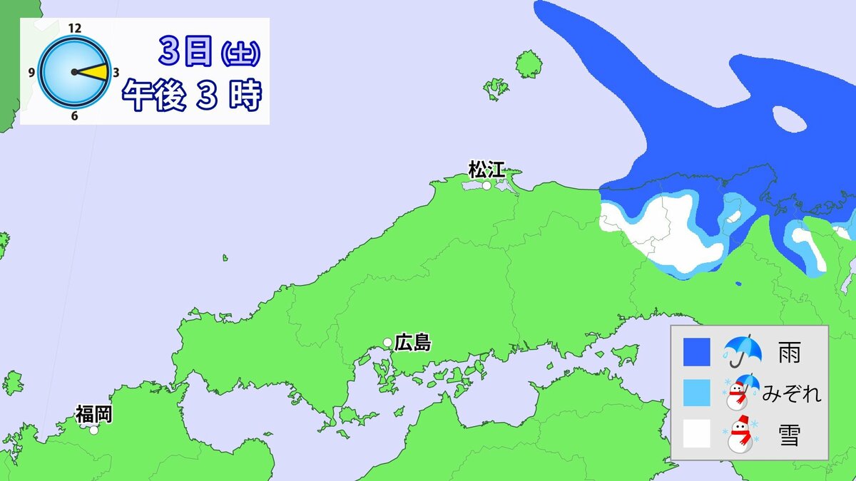 中国地方では、警報級の大雪となる可能性は低くなりましたが、引き続き3日夕方にかけて大雪となる見込みです。