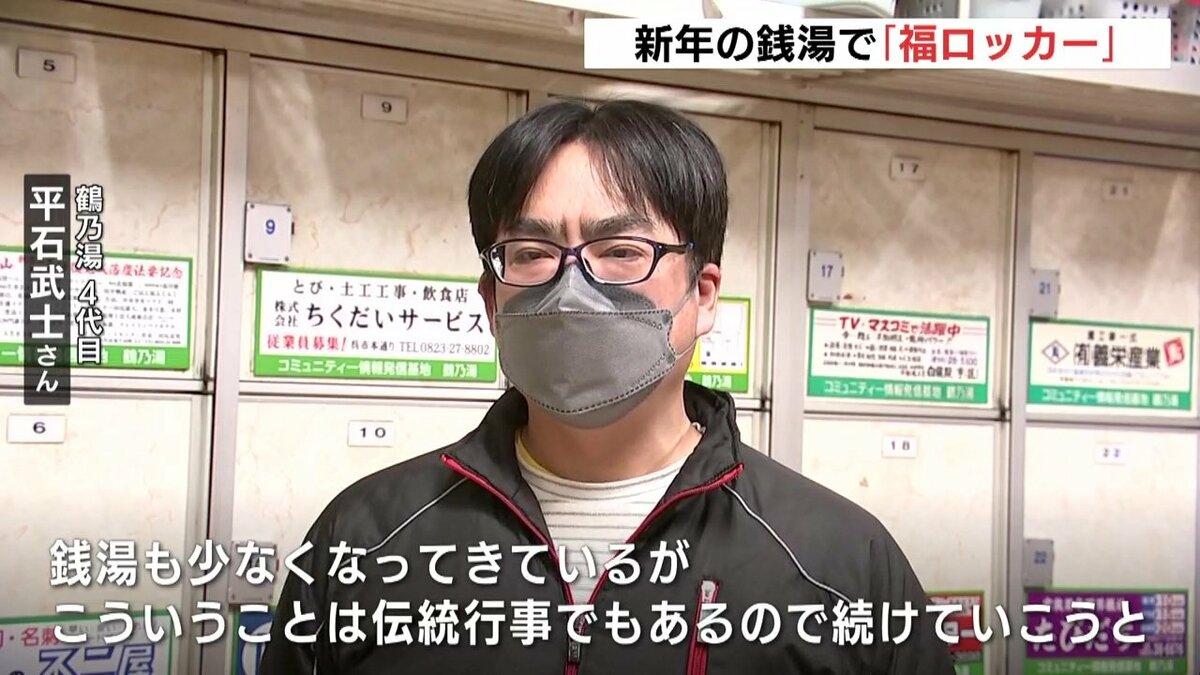 呉市阿賀北にある銭湯「鶴乃湯」です。開店に並んだ入浴客のお目当ては、1953年の創業以来続く福袋ならぬ「福ロッカー」です。