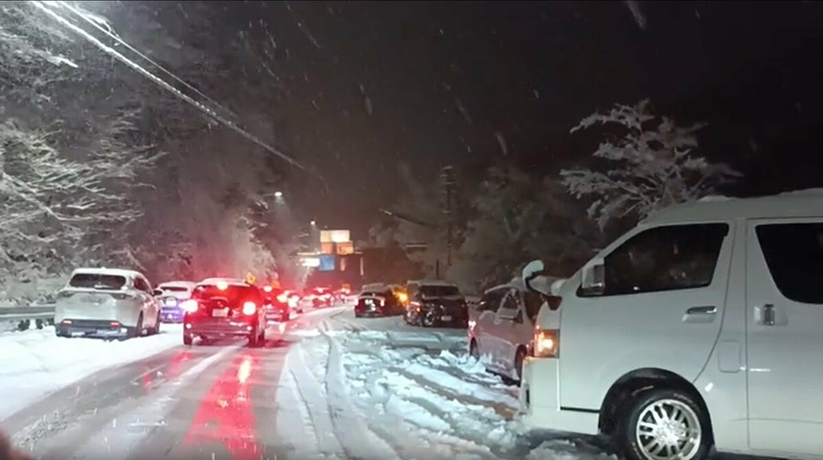 乗用車の全長をおおむね5メートルとすると、渋滞の長さ20kmで2車線が数珠繋ぎになっていたので、数千台の車に数万人が閉じ込められた状態になったとみられます。