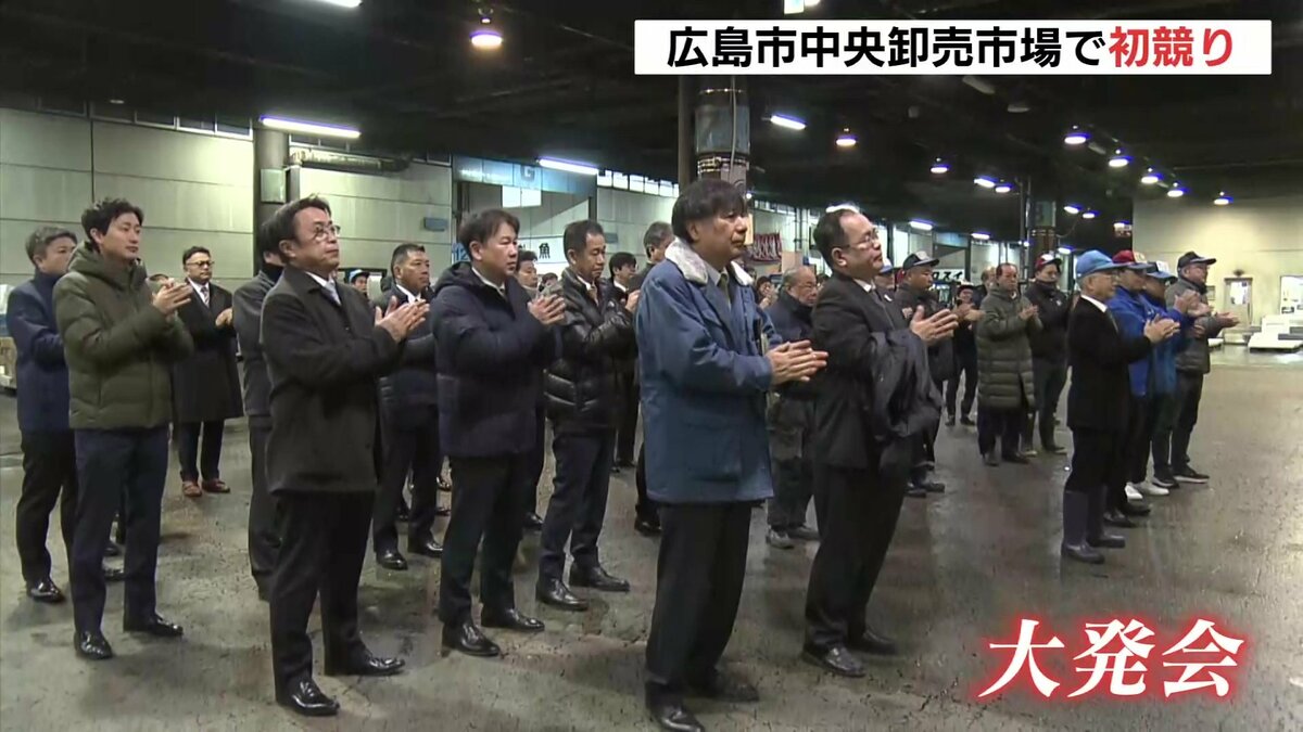 広島市中央卸売市場では、夜が明ける前から威勢のいい掛け声が響きました。関係者が集まる大発会もおこなわれ、3本締めで、1年間の商売繁盛を願います。