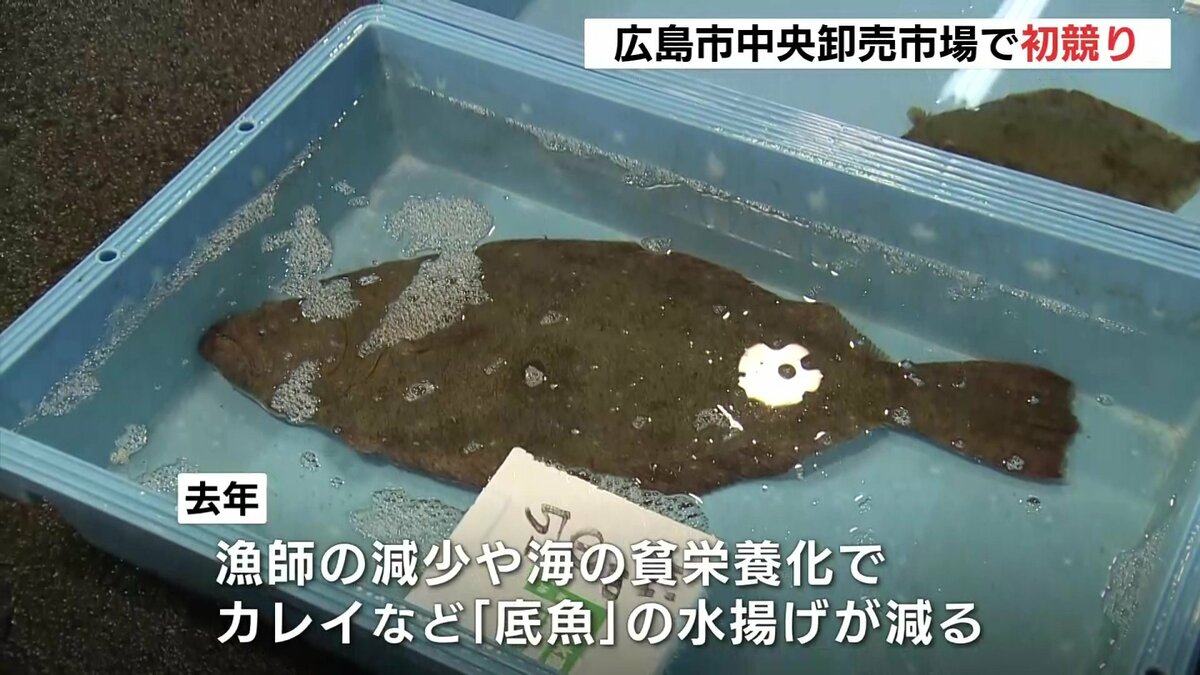 初セリでは、瀬戸内海で獲れたアナゴやハゲなどを、卸業者が次々と競り落としていきました。市場にとって去年は、漁師の減少や海の貧栄養化により、特にカレイなどの「底魚」の水揚げが減る厳しい一年だったそうです。
