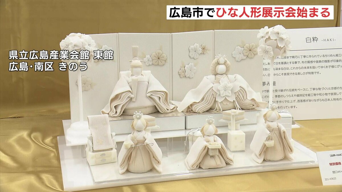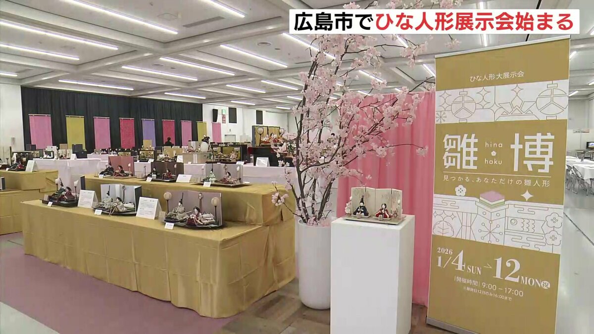 広島県立広島産業会館で始まっている、「ひな人形大展示会 雛博」では、500点以上のひな人形が展示されています。