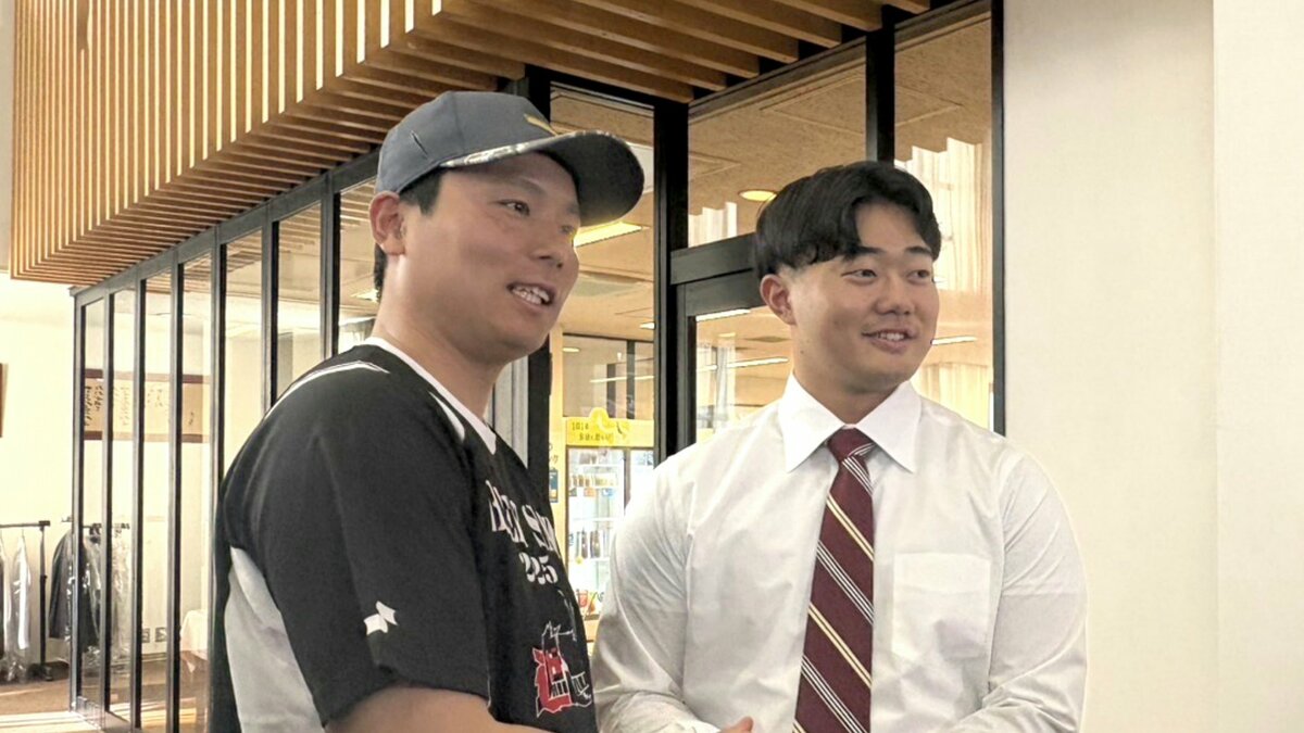 栗林投手は「守護神を目指していると思うから、ケガせず頑張って。一緒に頑張ろうと」と工藤投手に笑顔で声をかけました。