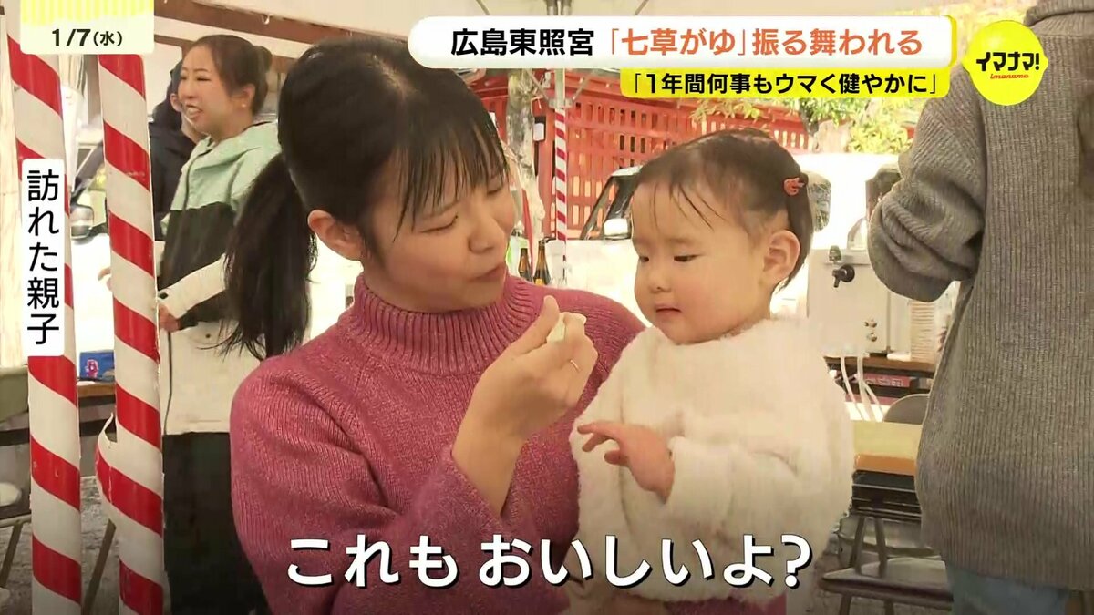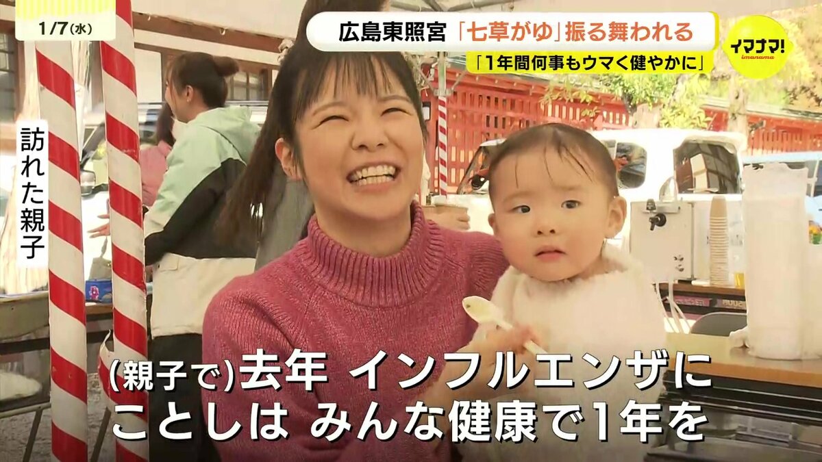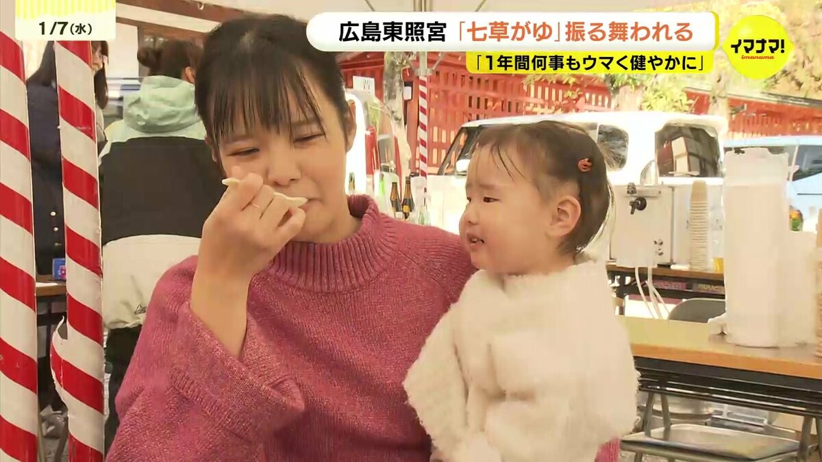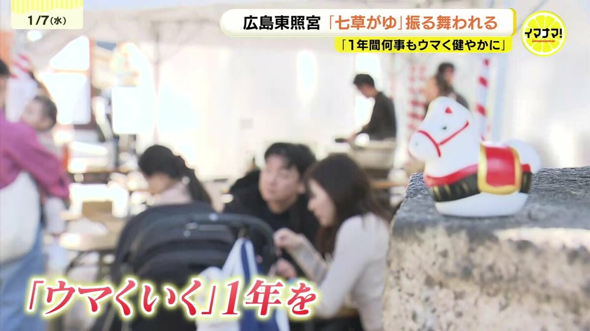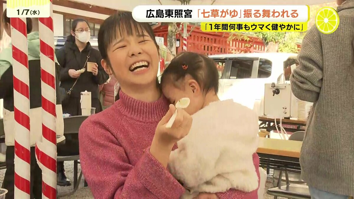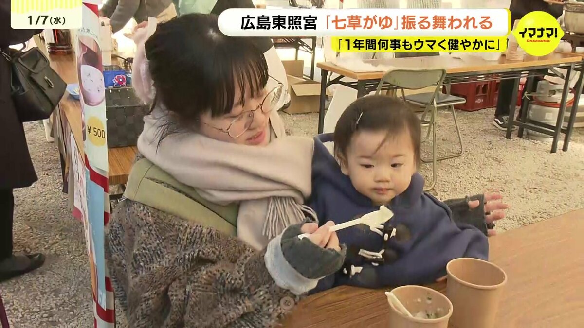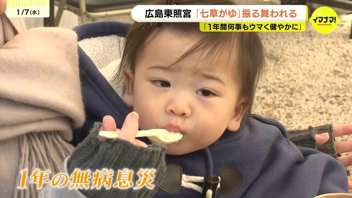 広島市東区の広島東照宮では、500食の七草がゆが販売されました。セリやナズナなど春の七草を入れたかゆを食べると、邪気が払われ、1年間、病気にならないと言われています。