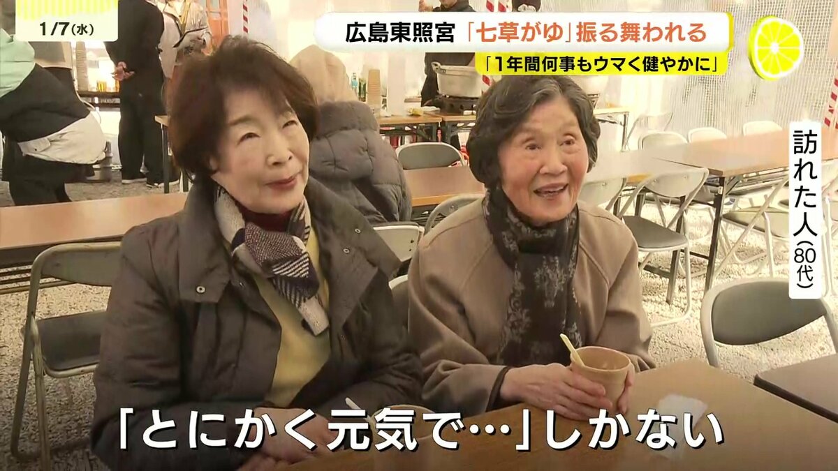 1月7日に食べると、1年間、健康に過ごせると言われる「七草がゆ」が、広島市の神社で振る舞われました。