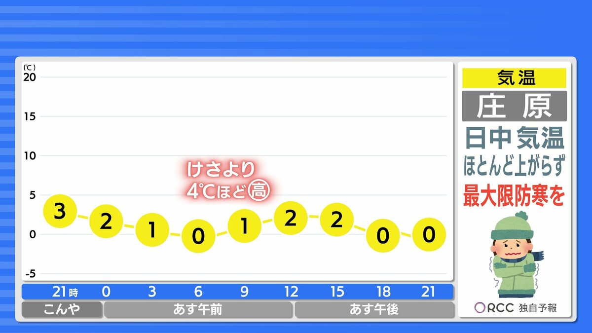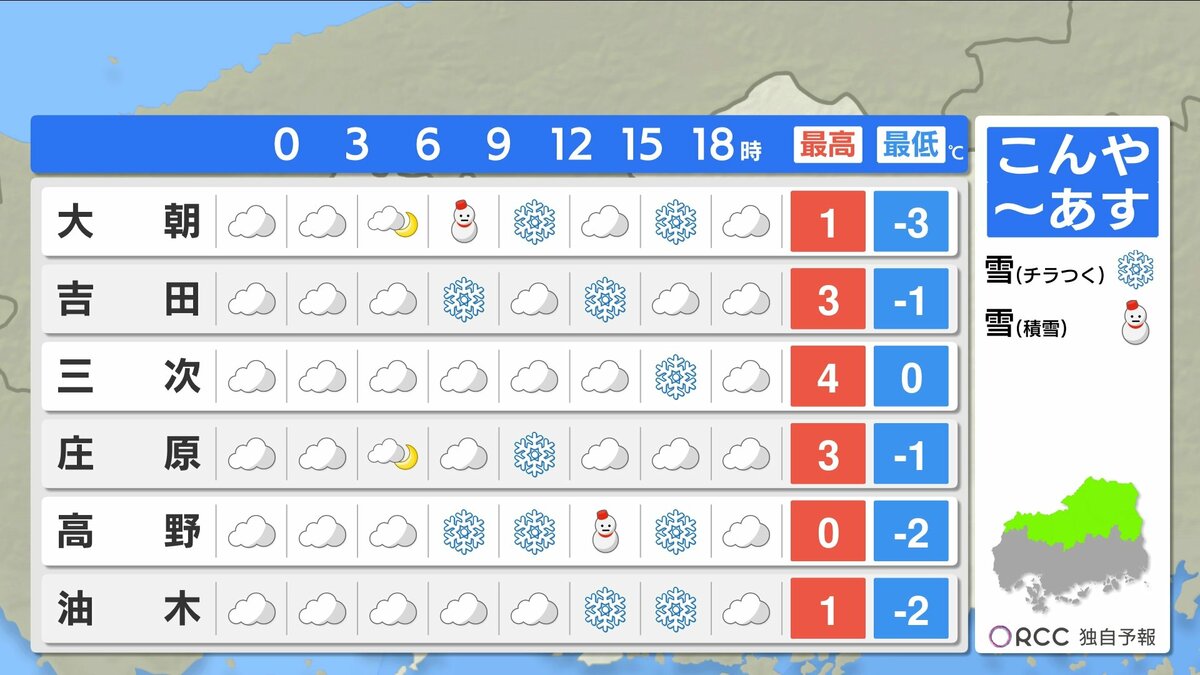 雪が残っている所では路面凍結による交通事故などに十分ご注意ください。また、庄原市にはなだれ注意報が発表されています。