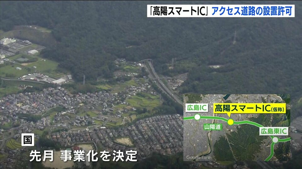 広島市安佐北区の山陽自動車道で計画されている、新しい「スマートインターチェンジ」にアクセスする道路の設置が許可されました。