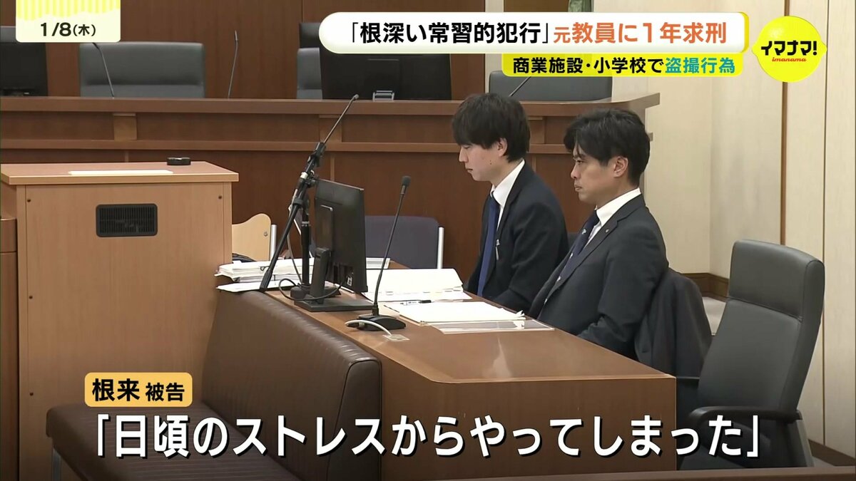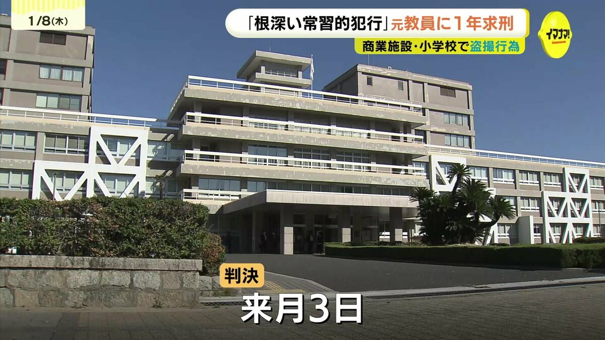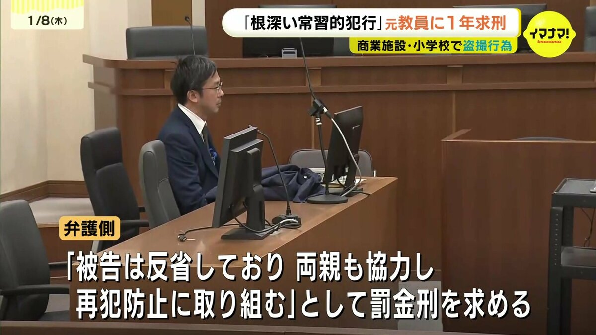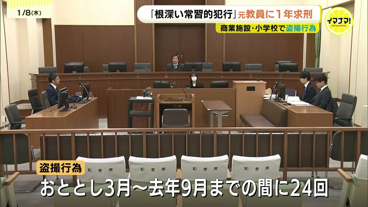 商業施設や勤務先の小学校で盗撮するなどしたとされる元教員の男の裁判で8日、検察側は「根深い常習的犯行」として懲役1年を求刑しました。
