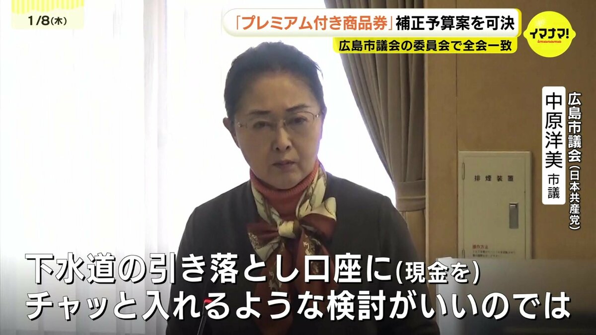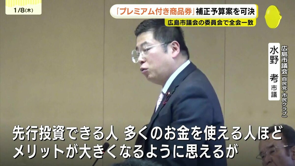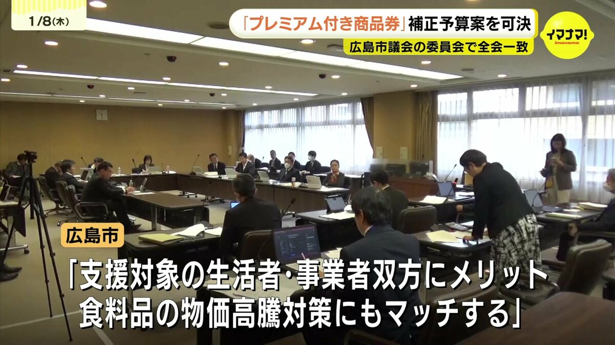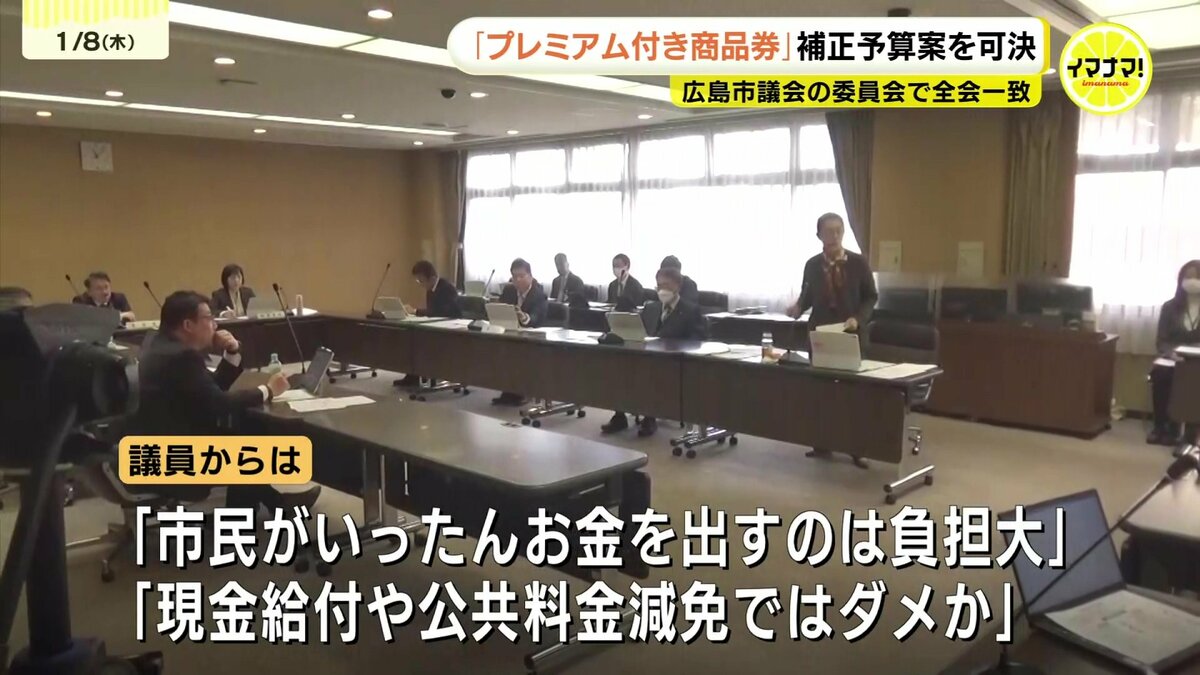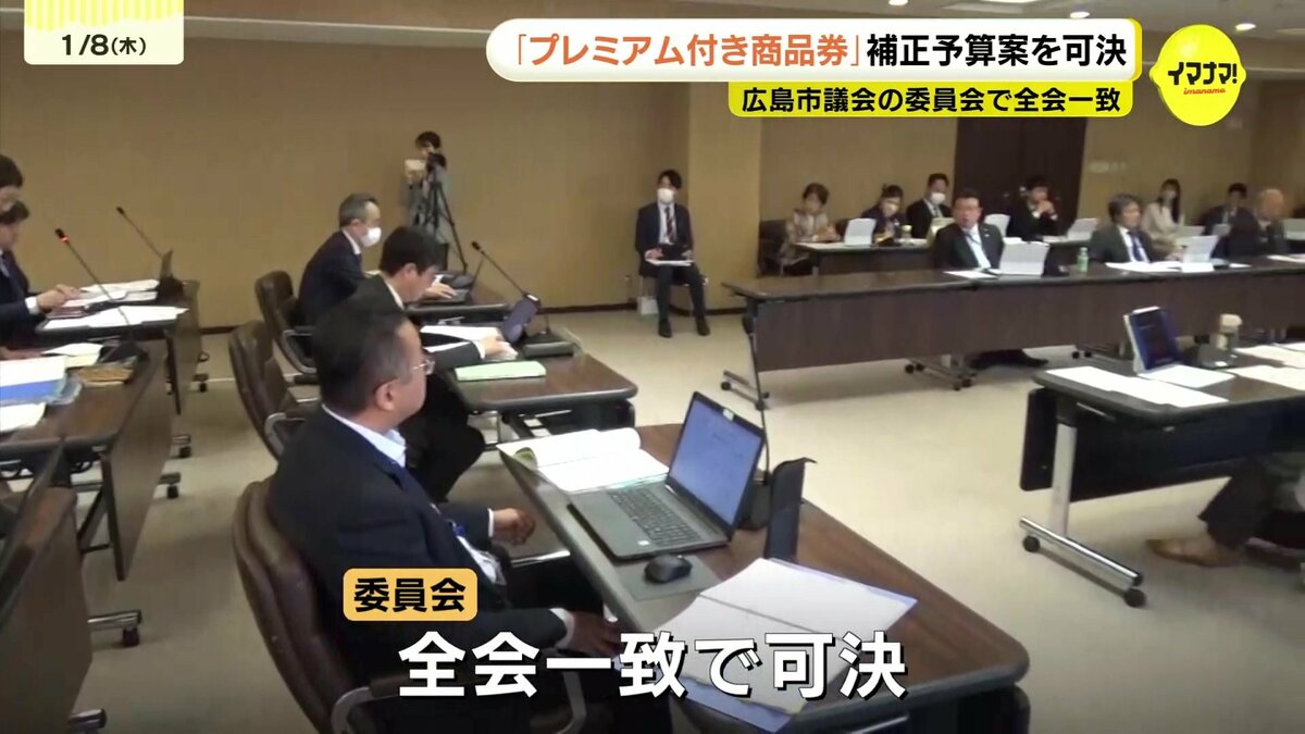 広島市が、物価高対策として政府が推奨する「おこめ券」の配布の代わりに実施する予定の「プレミアム付き商品券」の発行費用などを盛り込んだ補正予算案。広島市議会の委員会は全会一致で可決しましたが、市議からは意見が相次ぎました。