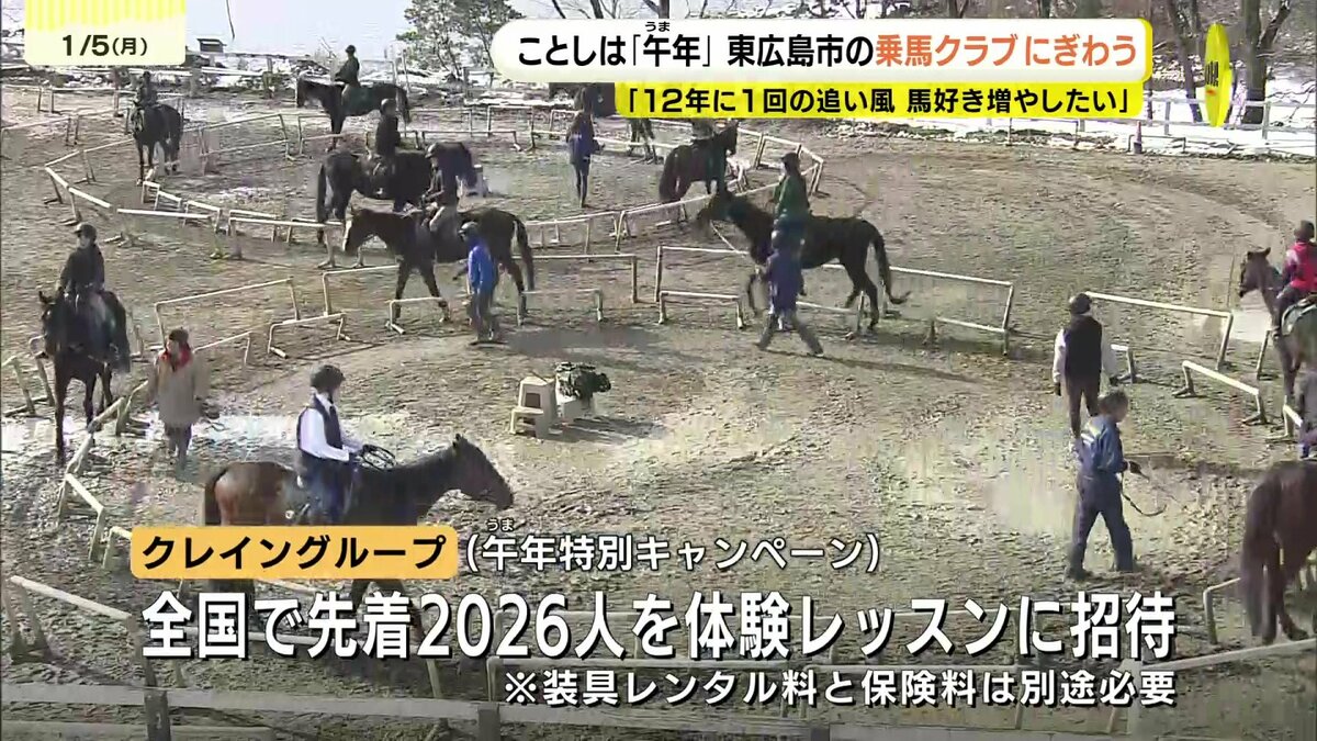 ことしの干支「午」にちなんで東広島市の乗馬クラブを取材しました。午年ならではの特別な乗馬体験会も開催されていました。
