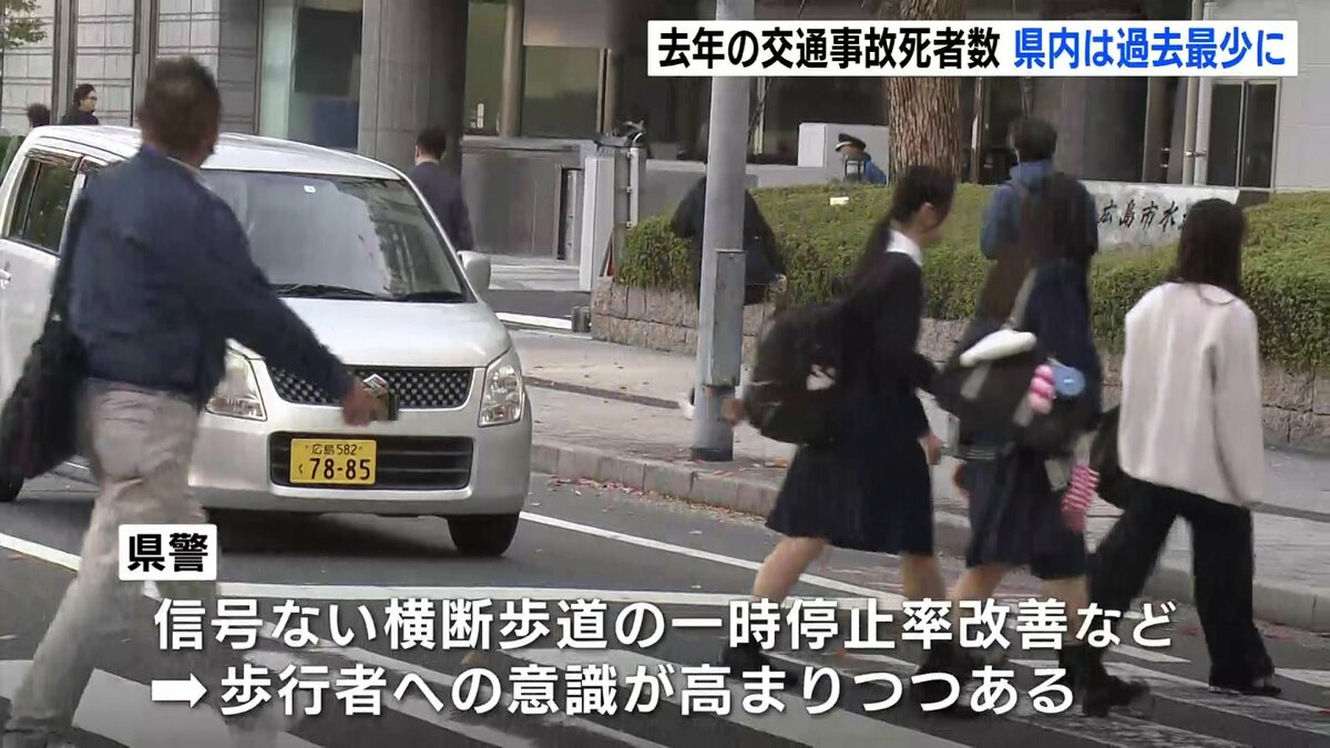 また、「道路横断中の死亡者数」は、おととしの23人から去年は7人と大幅に減少。県警は、県内で信号機のない信号での一時停止率が改善していることなどから、「運転手の歩行者に対する意識が高まりつつあることが要因の1つ」と分析しています。