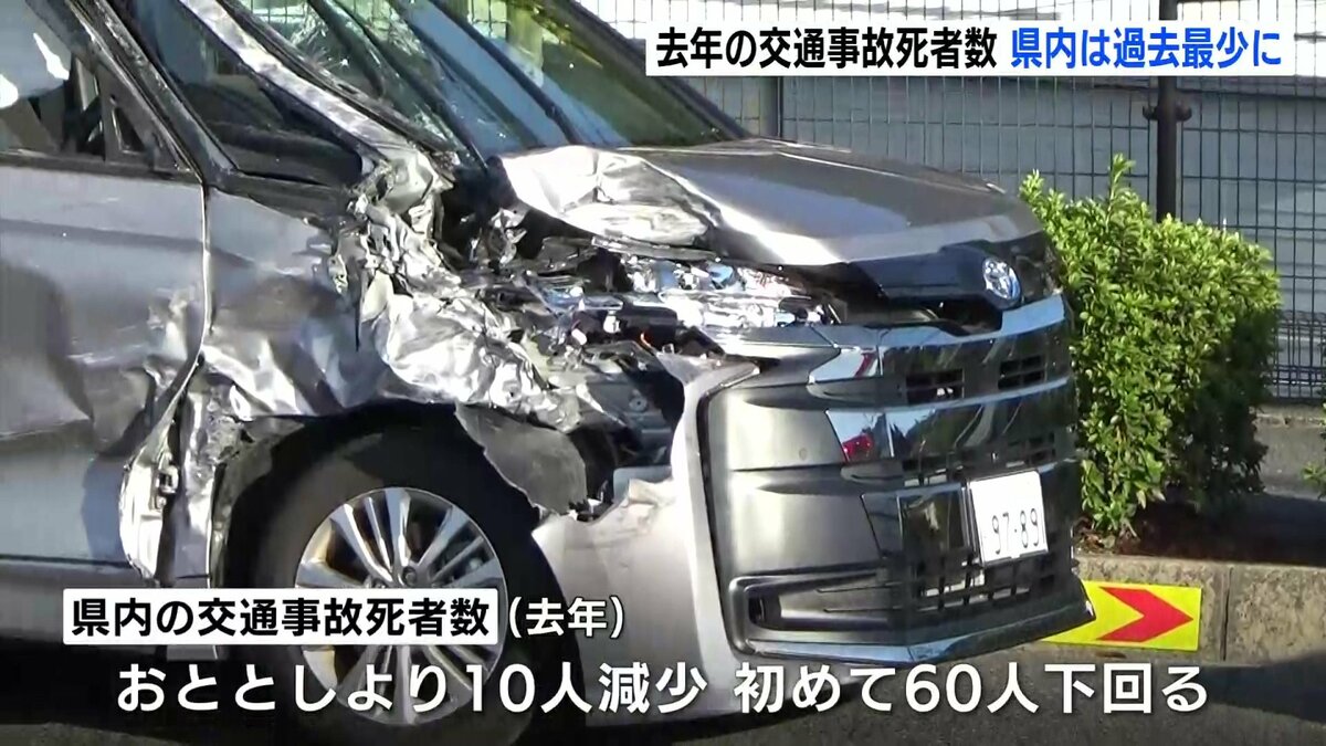 県警によりますと、去年の交通事故死者数は、58人でした。おととしからは10人減少していて、1年間の交通事故死者数としては初めて60人を下回りました。