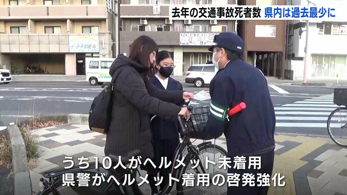一方、「自転車乗車中の事故による死者数の増加」を課題として挙げています。死亡した11人のうち、10人がヘルメットを未着用でした。県警は今後、ヘルメット着用の啓発を強化していくということです。