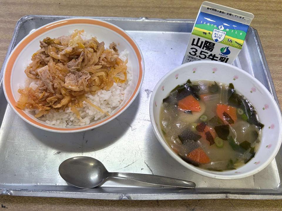 この日の献立は「キムタクご飯」と「韓国風スープ」に「牛乳」。