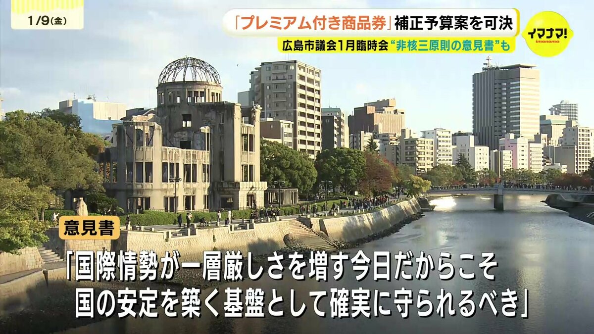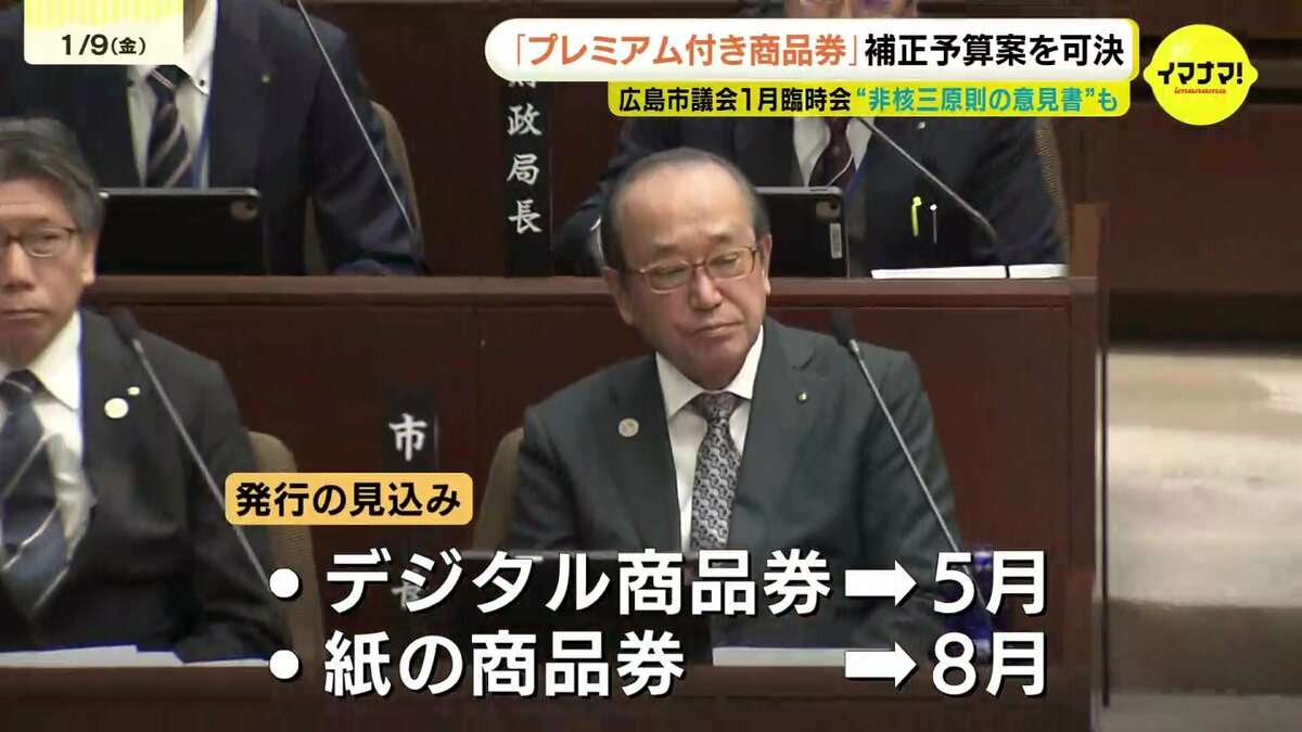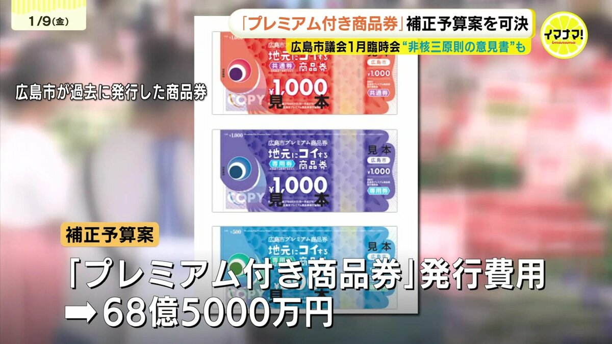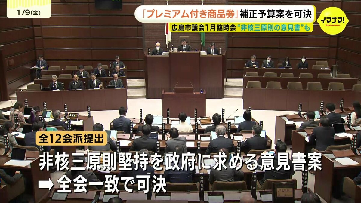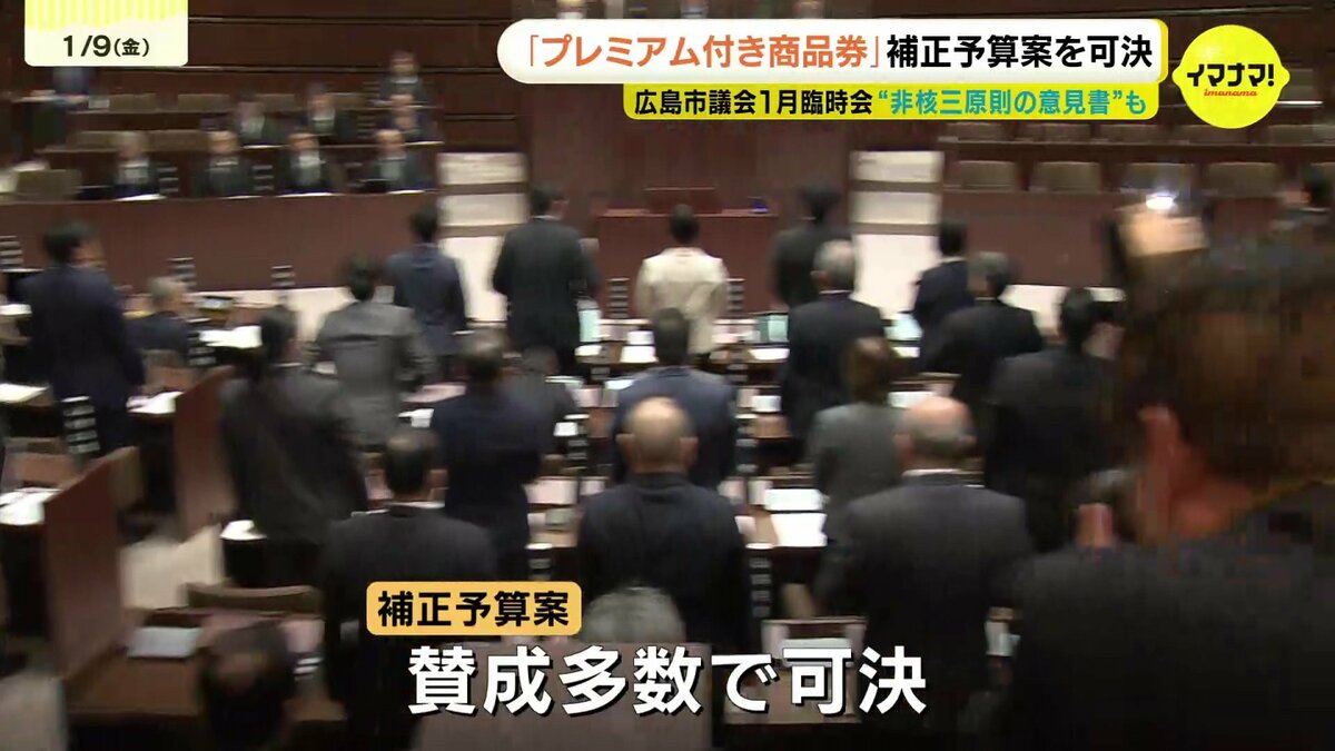 広島市議会の1月臨時会は、9日、最終日を迎え、プレミアム付き商品券の発行費用などが盛り込まれた補正予算案が可決されました。